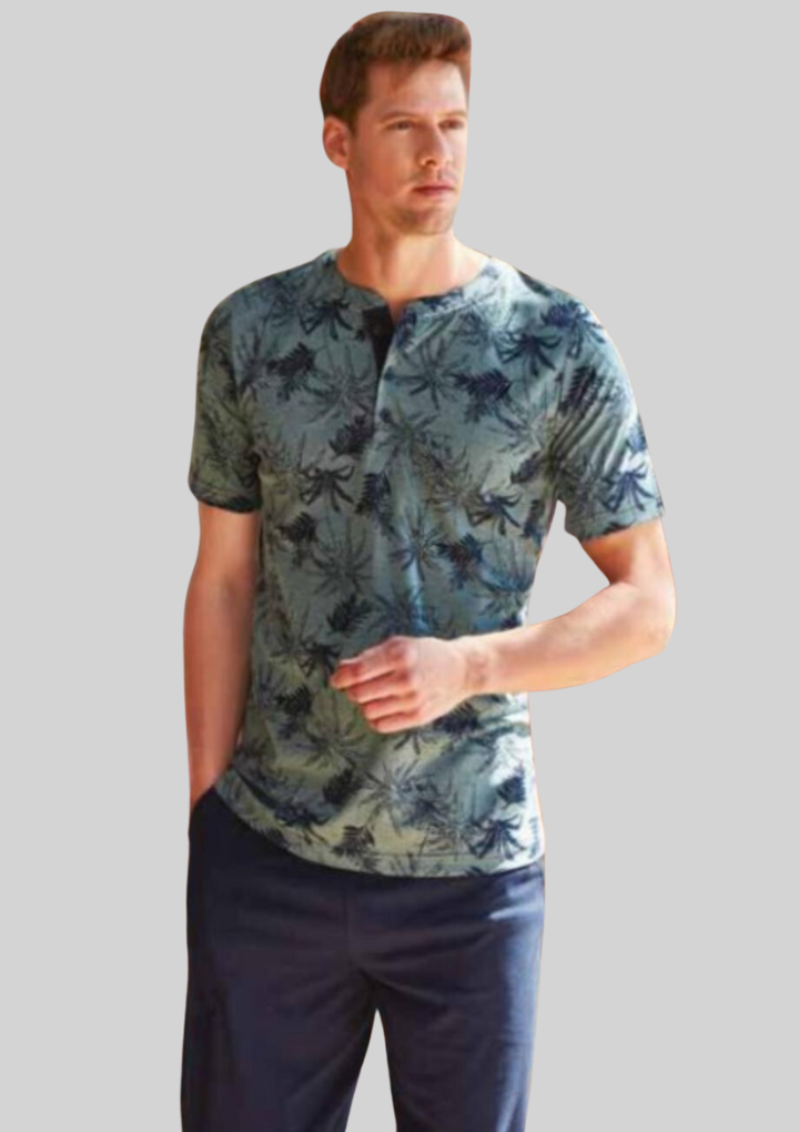 Представьте себе зимние и осенние вечера, когда хочется только одного – укутаться в уют и комфорт. Эта мужская пижама со штанами и футболкой именно для таких моментов