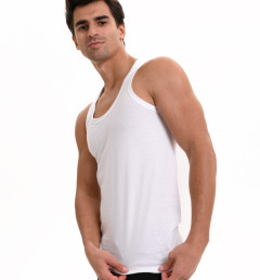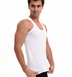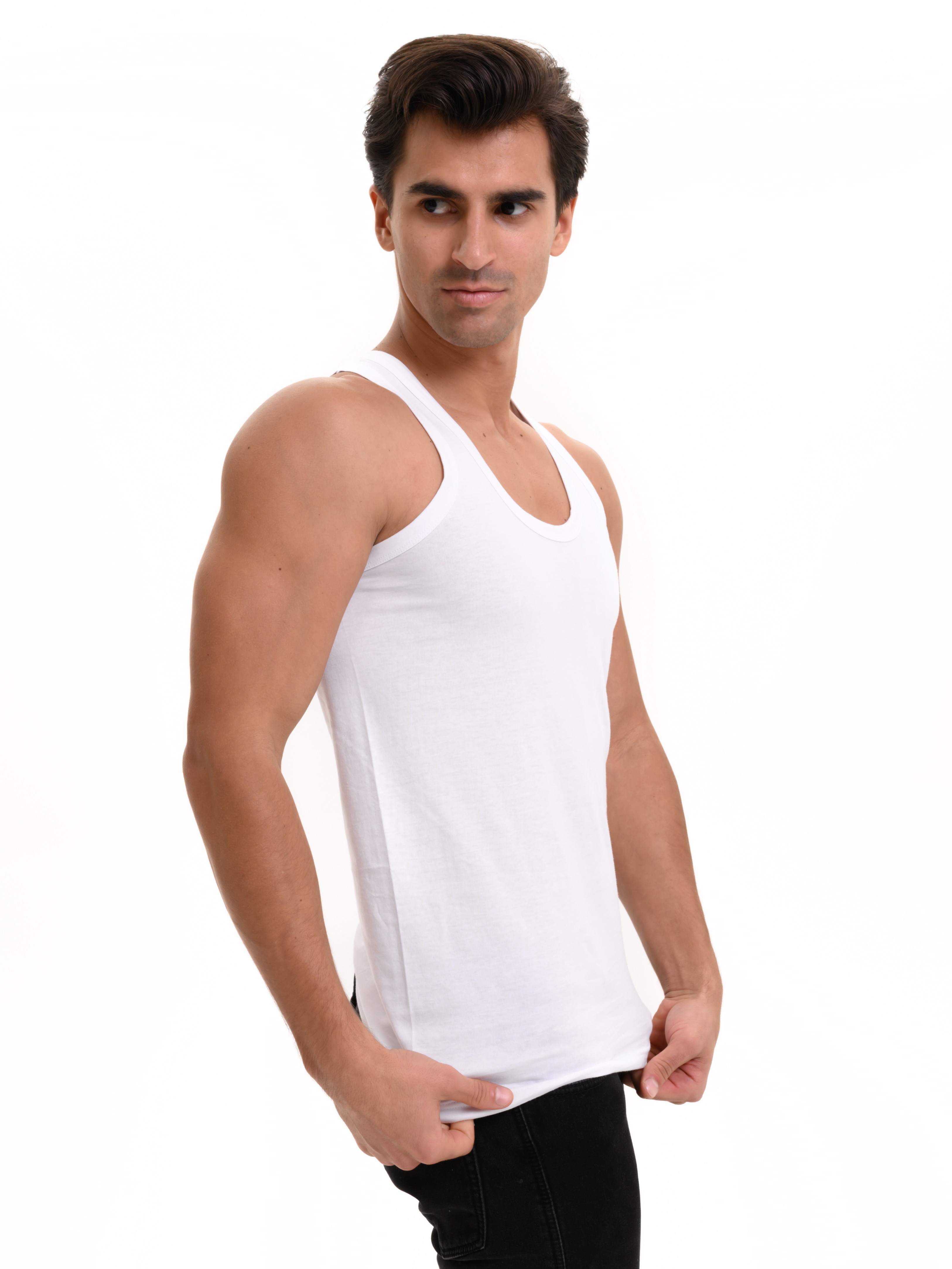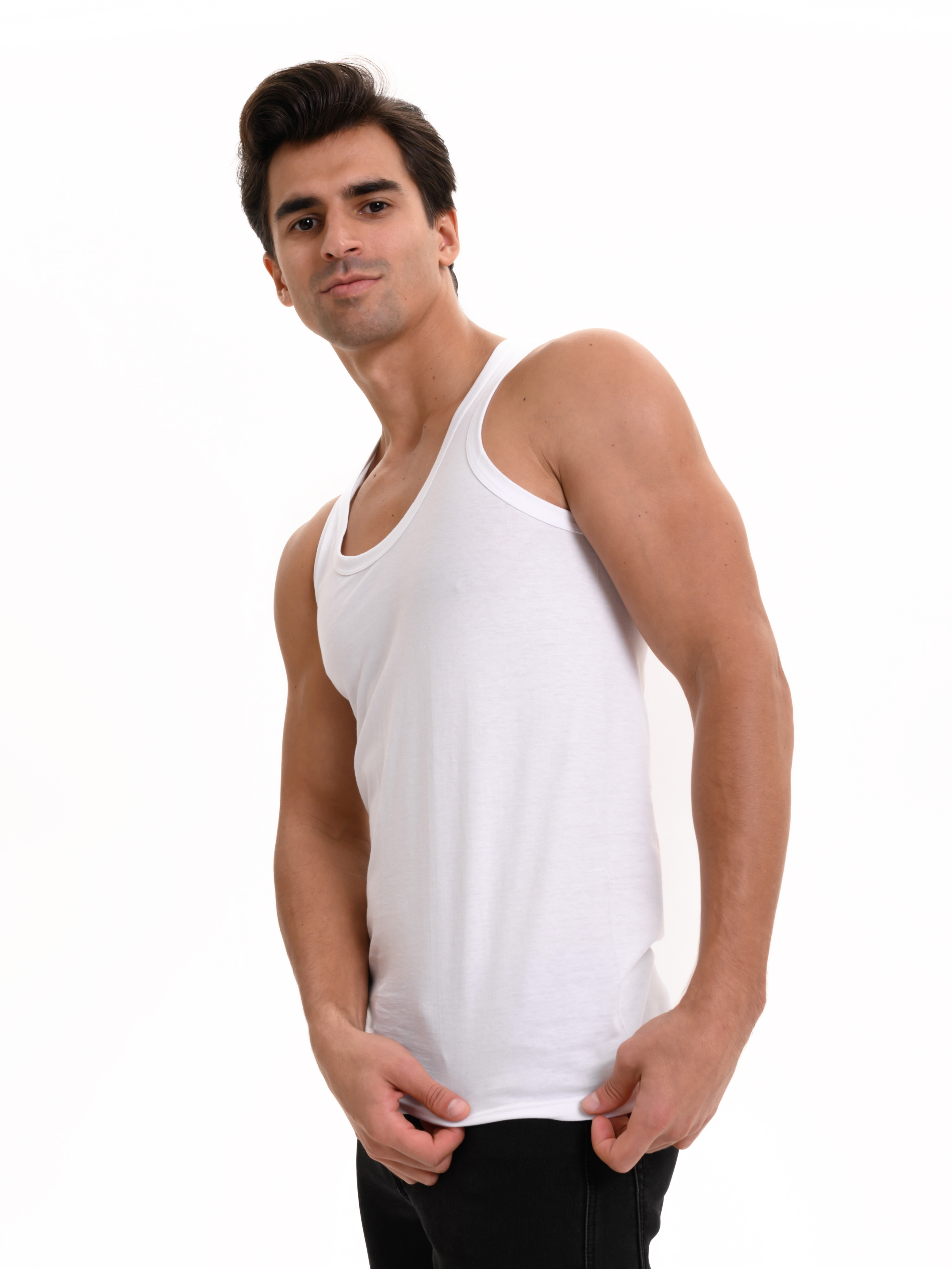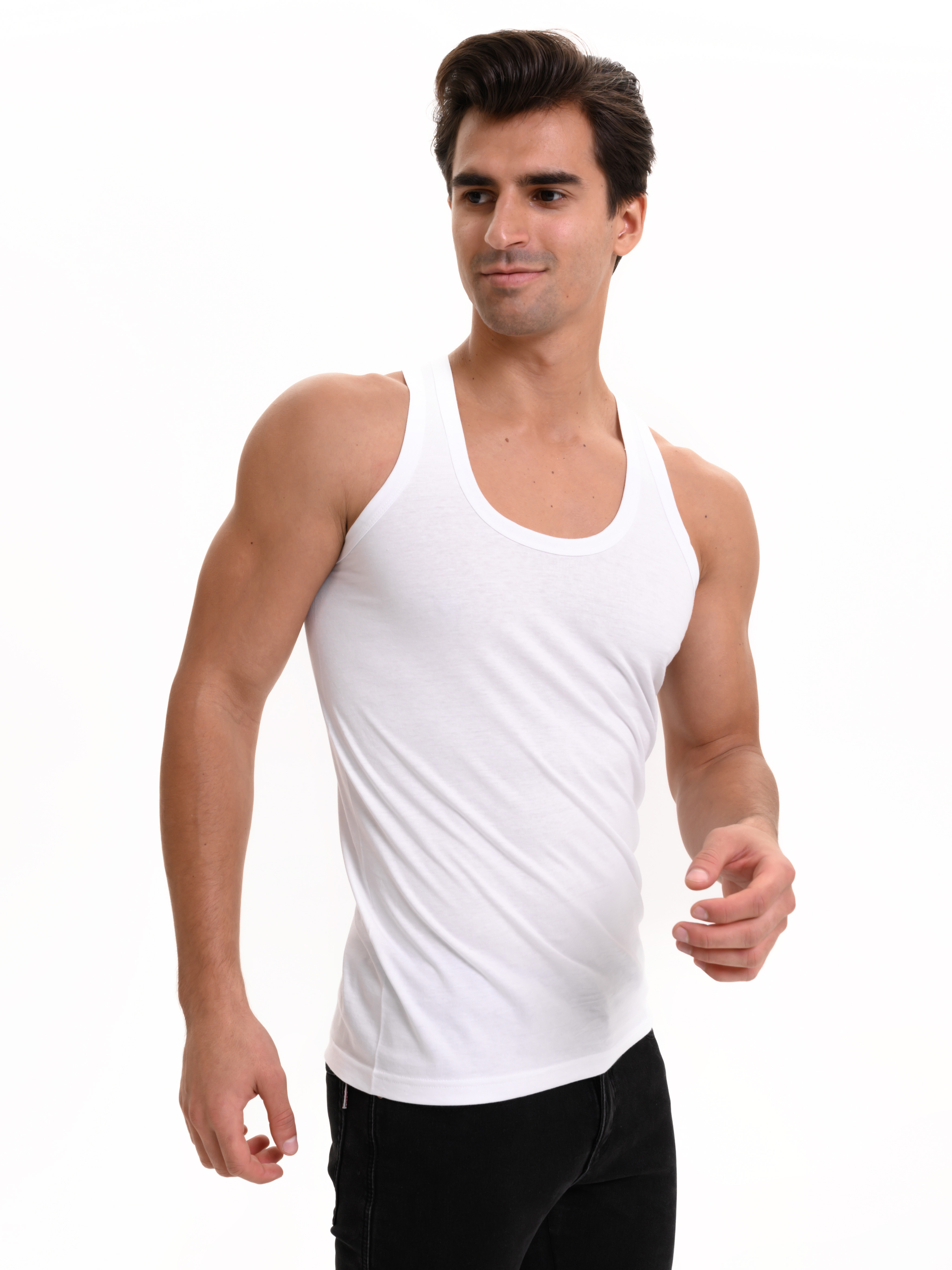 Мужская классическая майка на широких лямках, без боковых швов представляет собой простую и элегантную одежду, которая может использоваться как нижнее белье или как верхний слой в зависимости от стиля и предпочтений владельца. Майка изготовлена из 100% хлопка, что делает ее долговечной и комфортной при носке. Она имеет облегающий крой, который подчеркивает фигуру. Майки без боковых швов часто предпочитаются теми, кто ценит минимализм и удобство в одежде