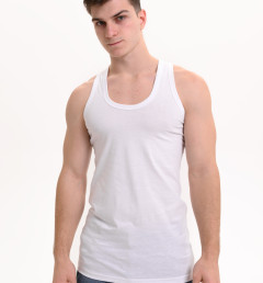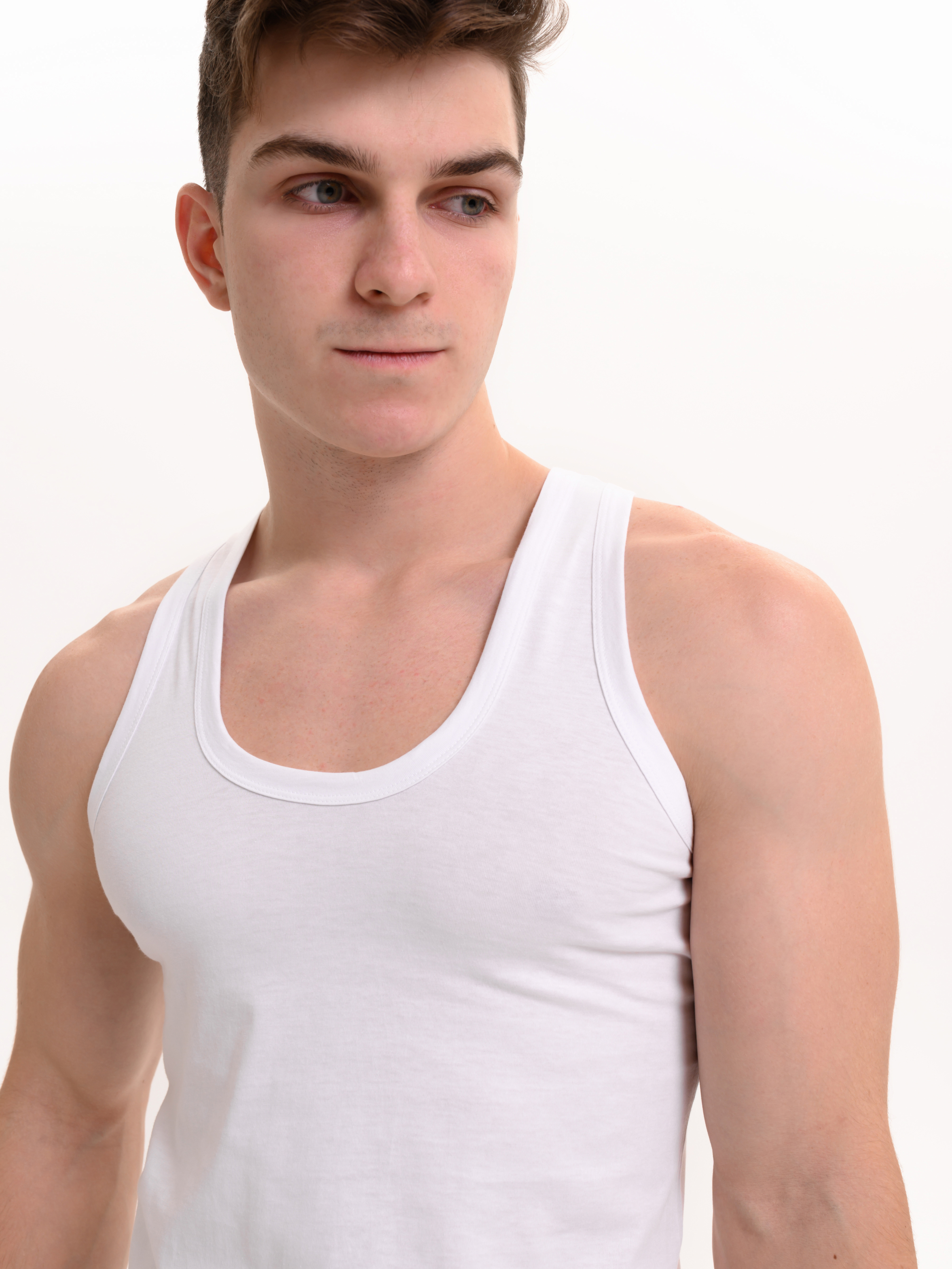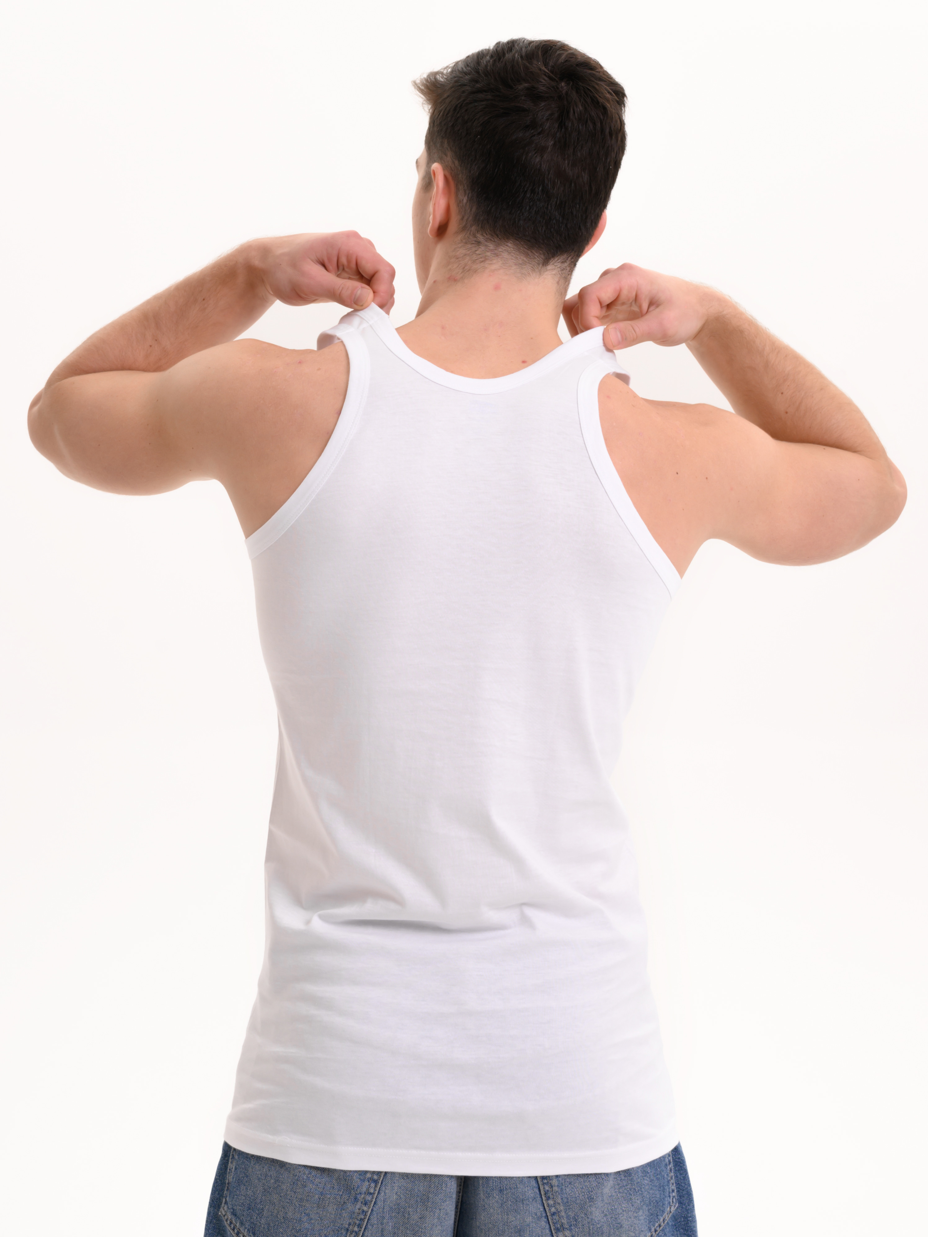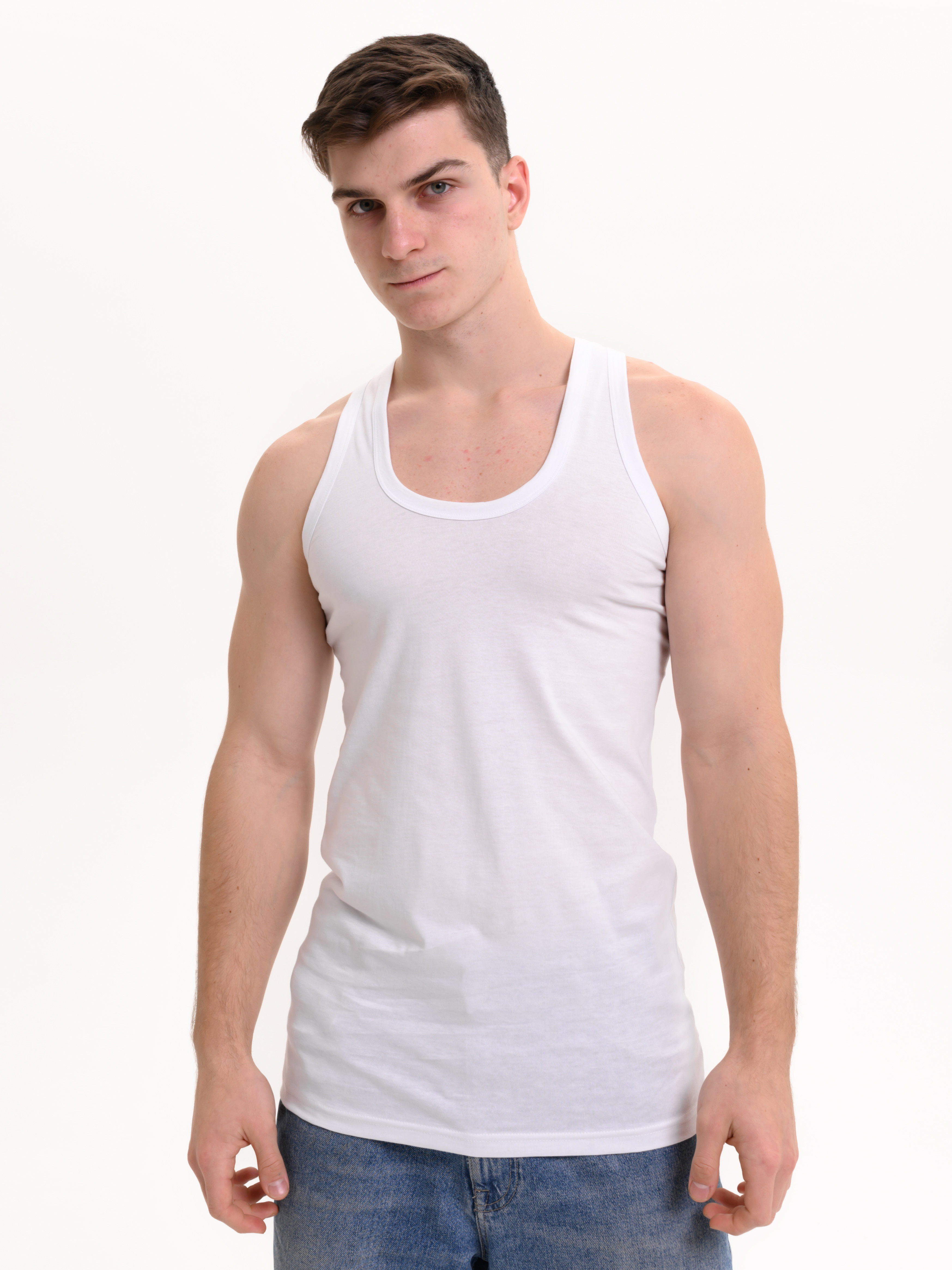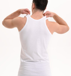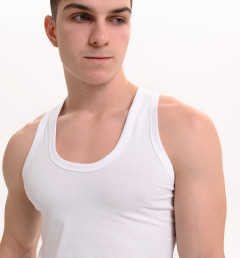 Мужская классическая майка на широких лямках, без боковых швов представляет собой простую и элегантную одежду, которая может использоваться как нижнее белье или как верхний слой в зависимости от стиля и предпочтений владельца. Майка изготовлена из 100% хлопка, что делает ее долговечной и комфортной при носке. Она имеет облегающий крой, который подчеркивает фигуру. Майки без боковых швов часто предпочитаются теми, кто ценит минимализм и удобство в одежде.
