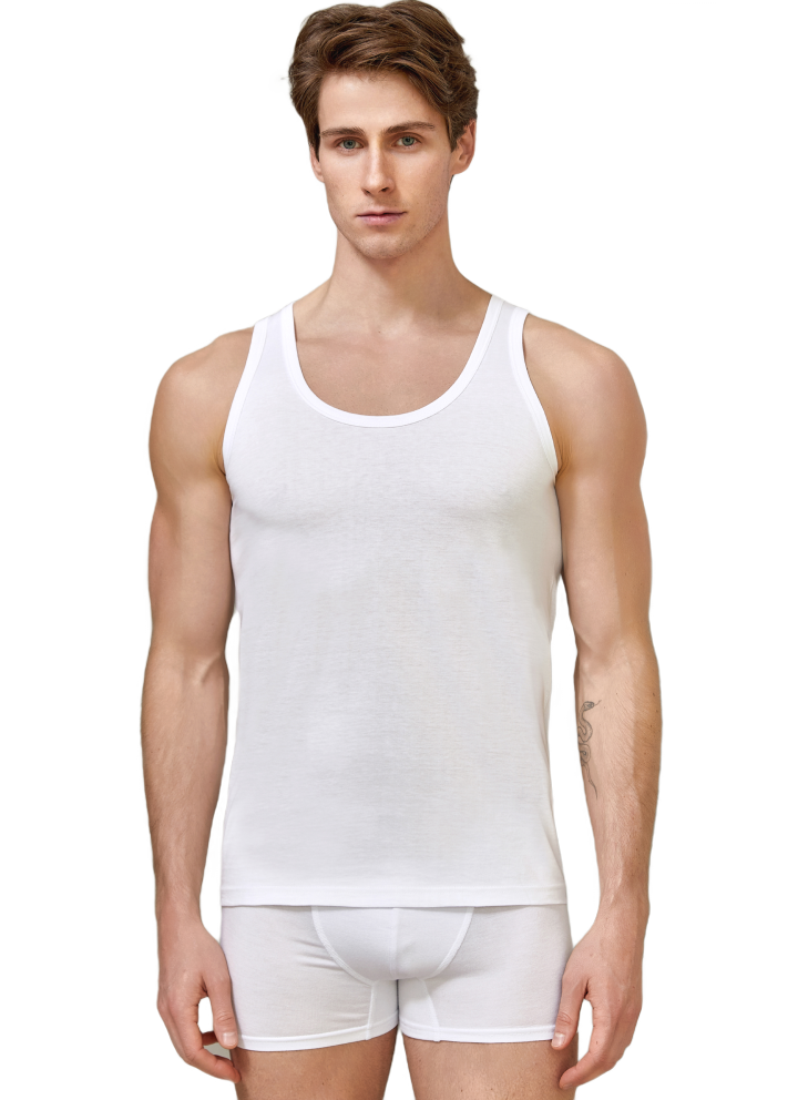 Мужская майка Berrak на широких лямках – это идеальное решение для тех, кто ценит комфорт и стиль в повседневной одежде. Эта модель отличается приталенным и удлиненным кроем, что обеспечивает не только привлекательный внешний вид, но и удобство в носке. Классическая спина добавляет универсальности, позволяя сочетать майку с различными элементами гардероба