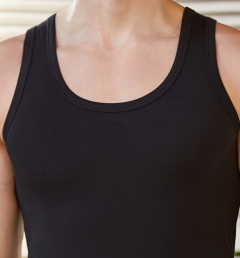 Эта майка имеет классический крой с широкими лямками, что делает её универсальным вариантом для любого стиля. Она отлично подходит как для ношения под рубашкой или пиджаком, так и в качестве самостоятельного элемента одежды. Облегающий силуэт подчеркивает мускулатуру и создает стильный образ, который можно легко комбинировать с различными предметами гардероба.