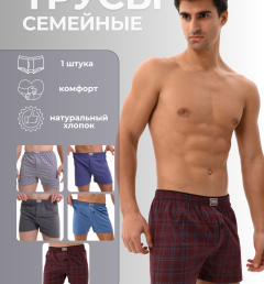 Мужские семейные трусы из 100% хлопка. Мягкая комфортная резинка. Цвета в ассортименте.