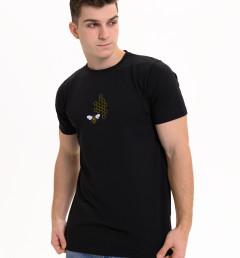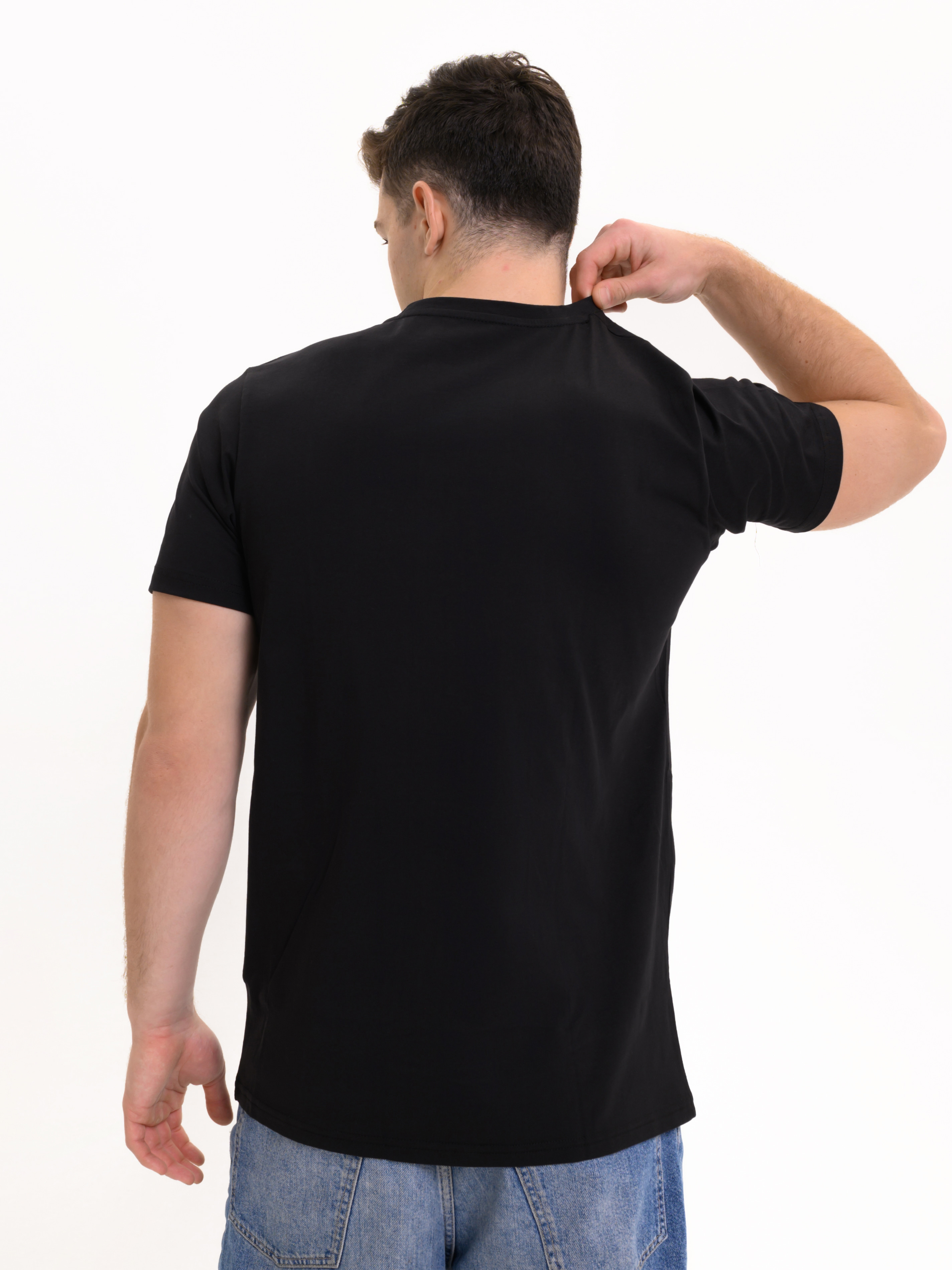 Футболка мужская Berrak классического фасона черного цвета прямого кроя, с коротким рукавом и округлым вырезом. Свободная посадка. С принтом. Рукав втачной с манжетом. Футболка сшита из 100 % хлопка pamuk.