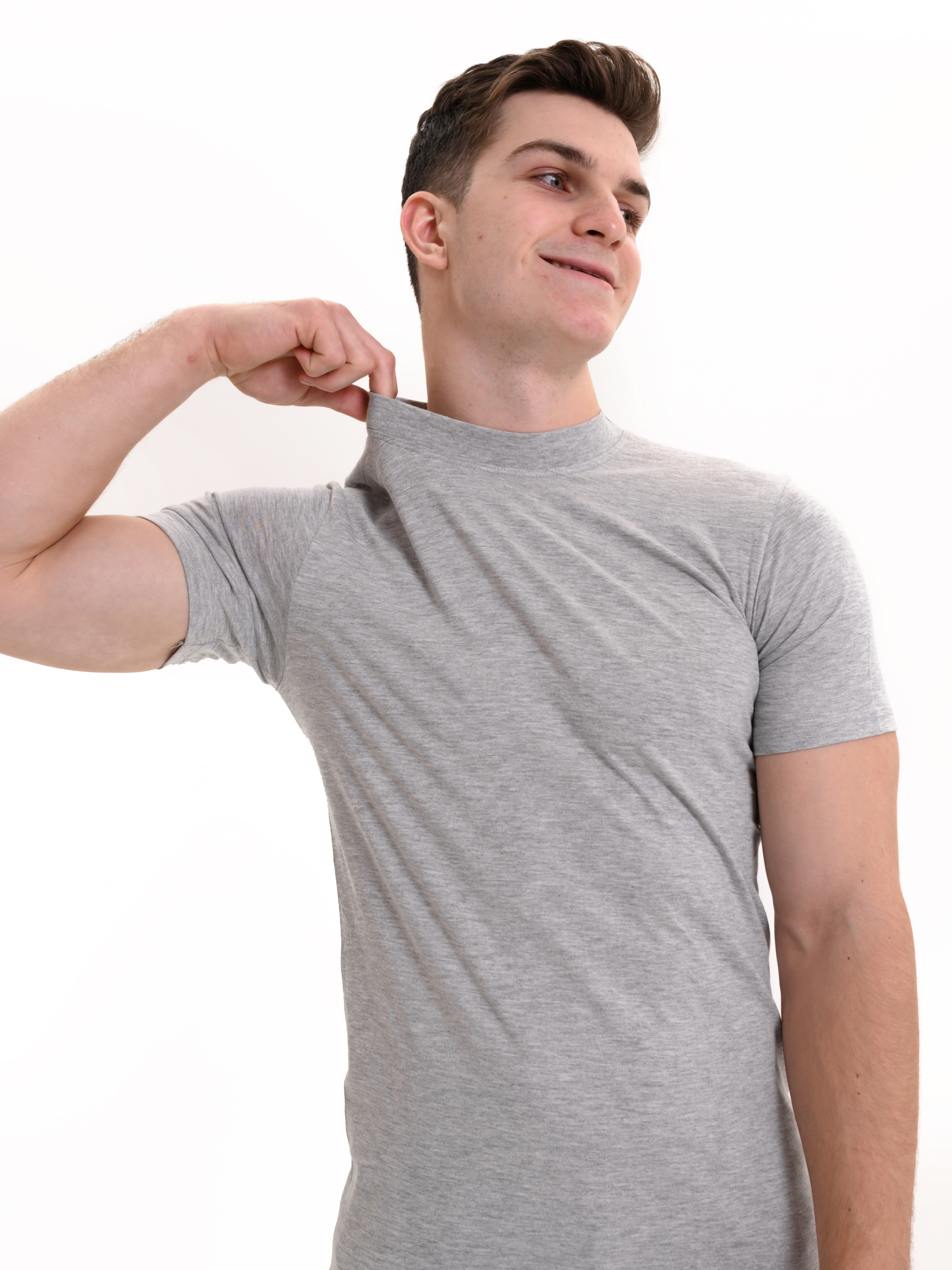 Футболка с коротким рукавом и круглым вырезом. Приталенная, хорошо сидит по фигуре. Футболка изготовлена из 100% хлопка