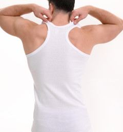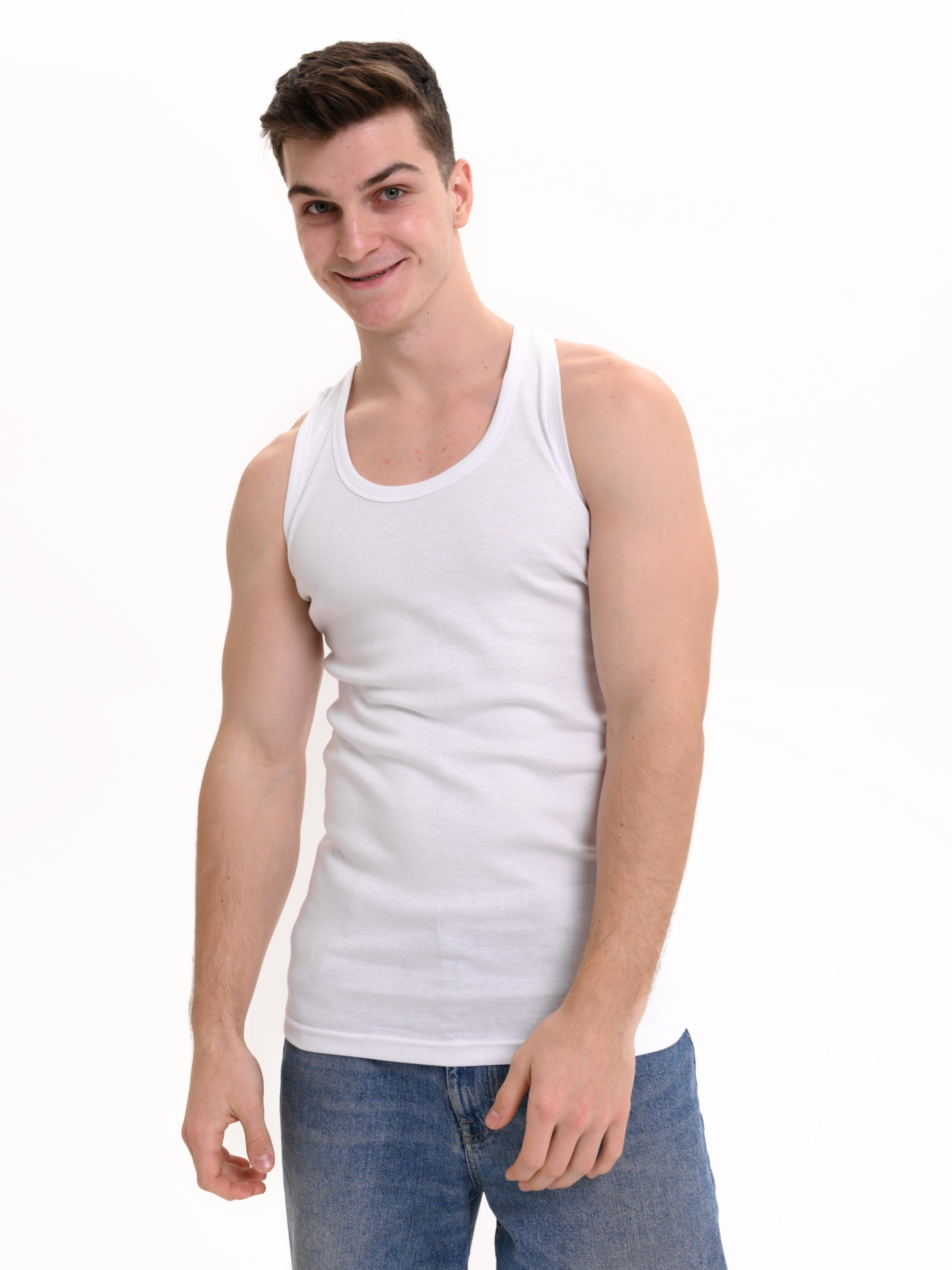 Мужская майка Berrak на широких лямках. Слегка приталенная. Спина борцовка. Изделие изготовлено из 100% хлопка рибана. Мужская классическая майка на широких лямках, без боковых швов представляет собой простую и элегантную одежду, которая может использоваться как нижнее белье или как верхний слой в зависимости от стиля и предпочтений владельца.. Майки без боковых швов часто предпочитаются теми, кто ценит минимализм и удобство в одежде