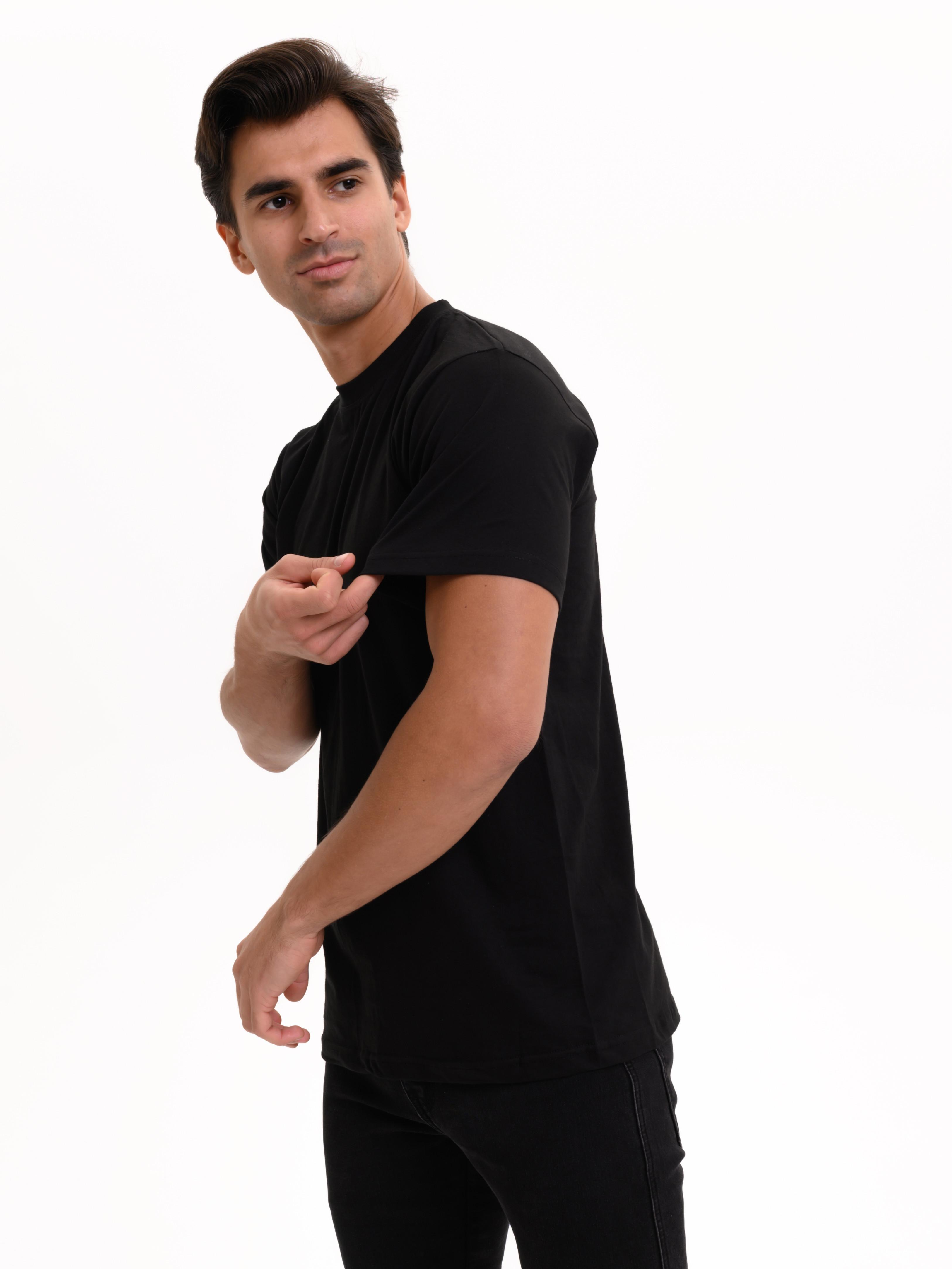 Базовая футболка Berrak черного цвета с коротким рукавом и круглым вырезом. Приталенная, плотно прилегает к фигуре. Футболка изготовлена из 100% хлопка.