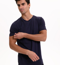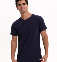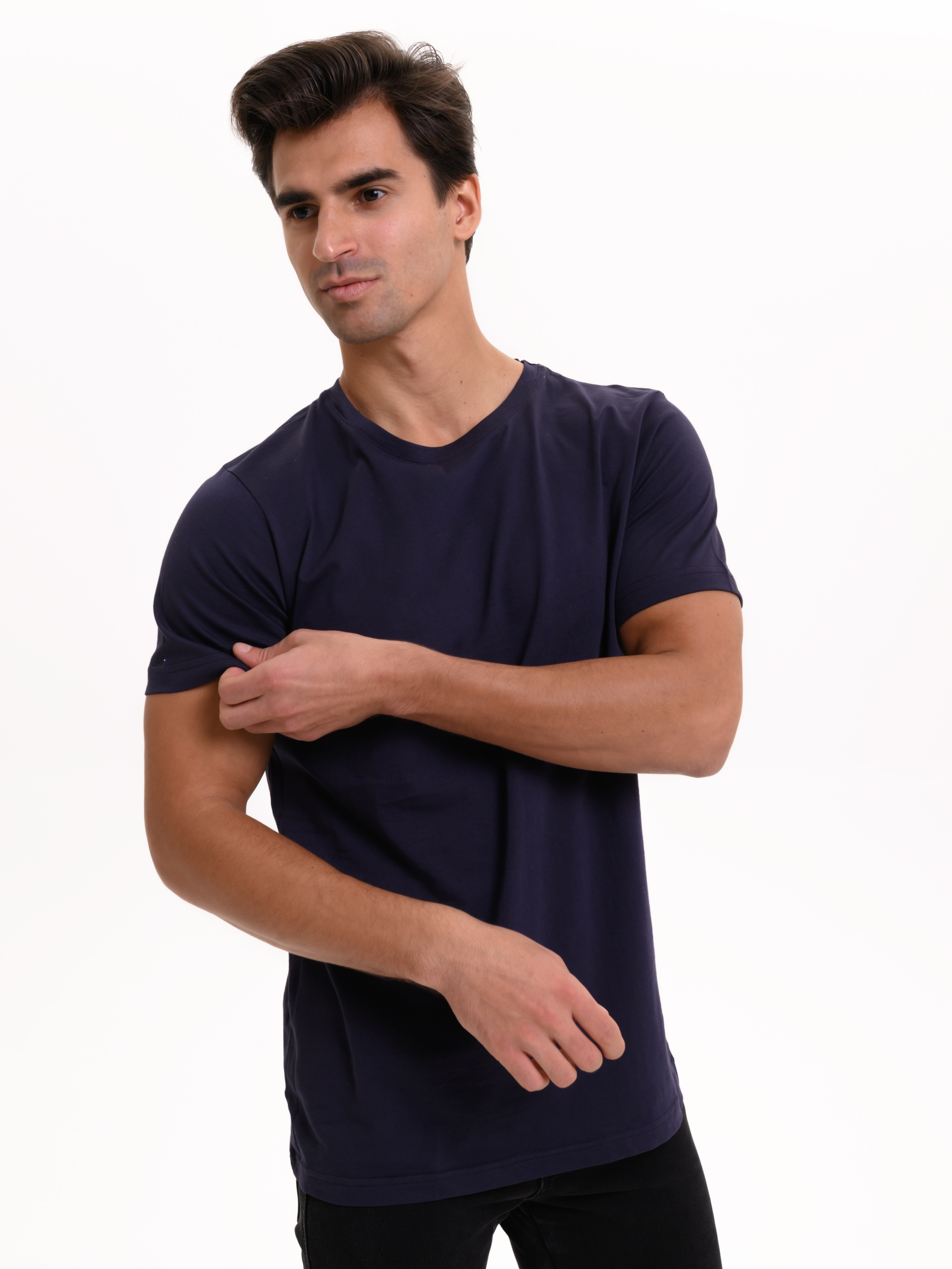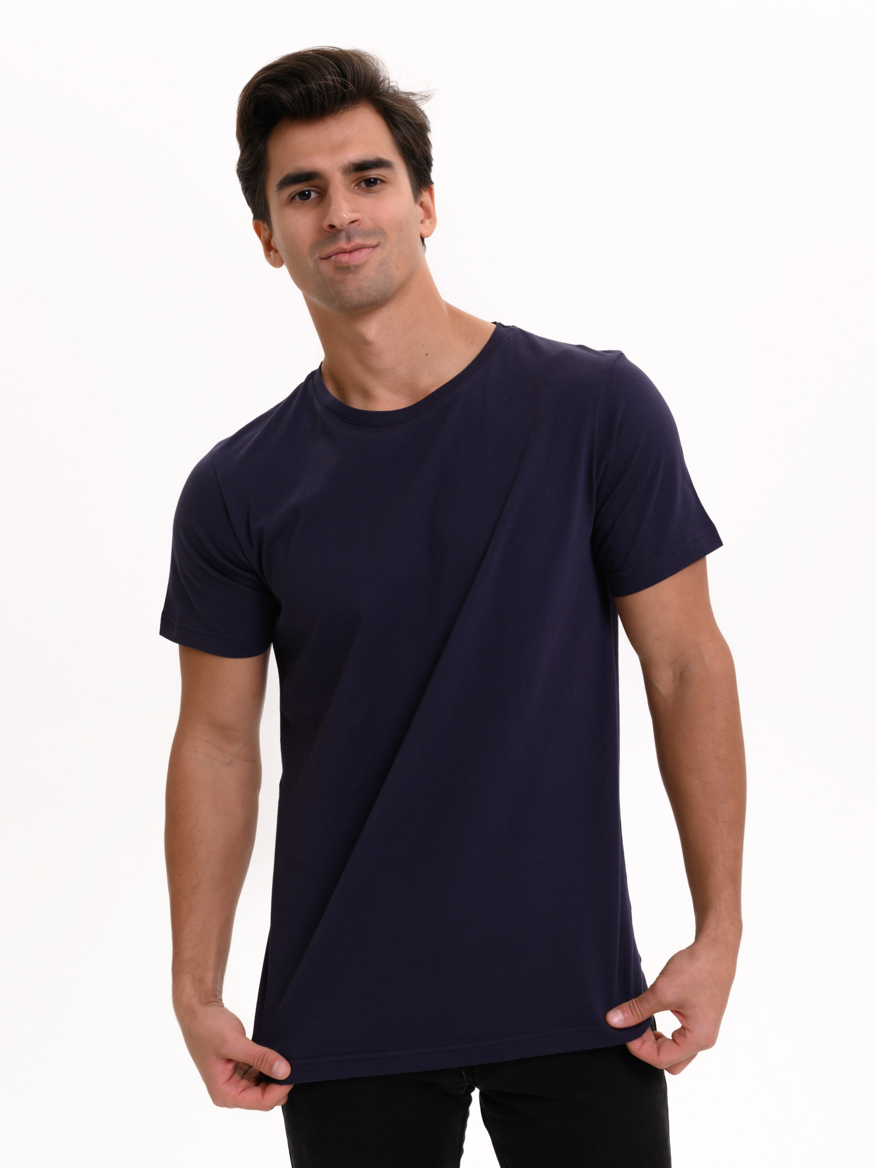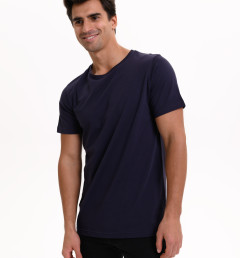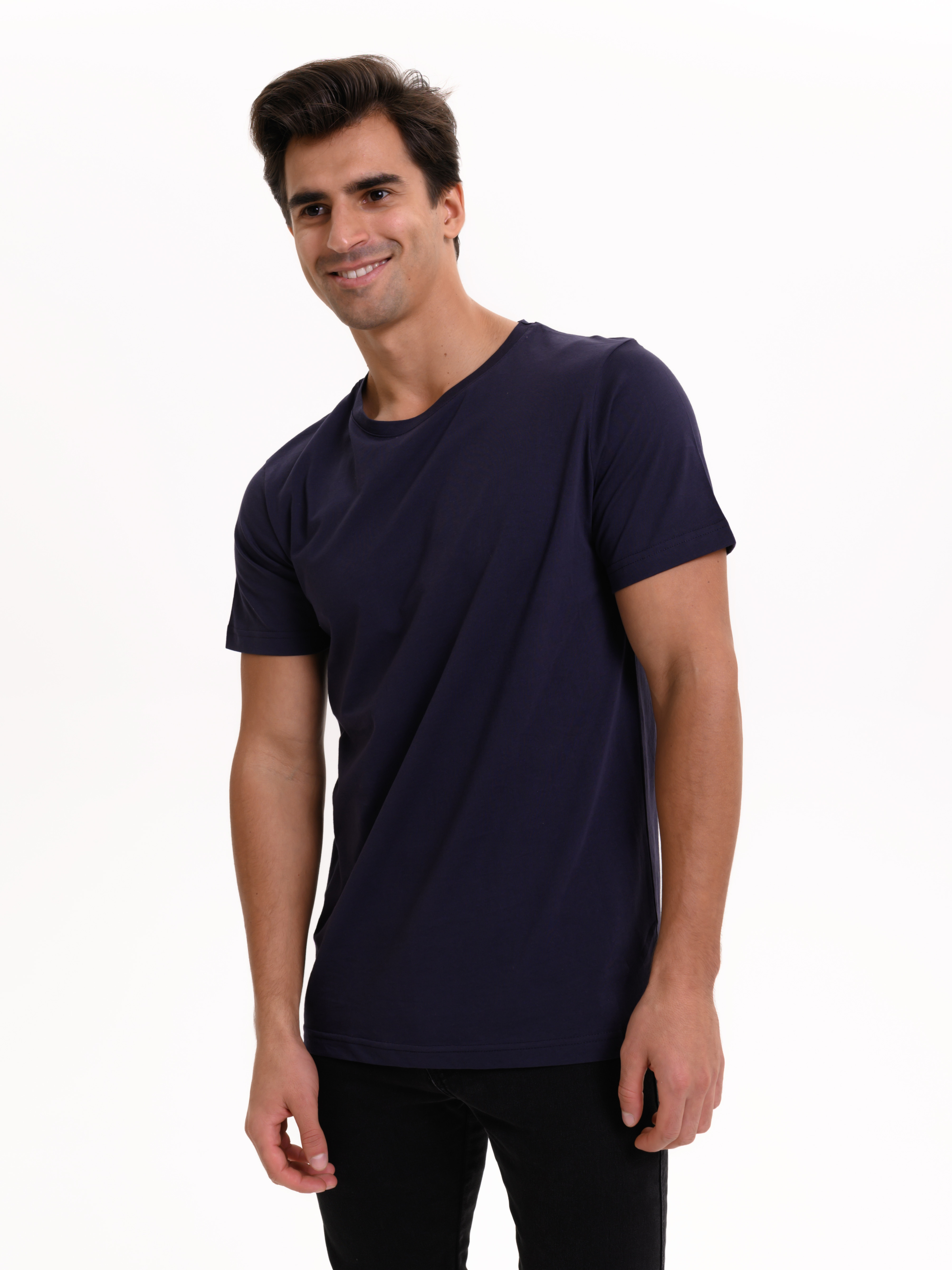 Базовая футболка Berrak темно-синего цвета с коротким рукавом и круглым вырезом. Слегка приталенная. Футболка изготовлена из 100% хлопка.