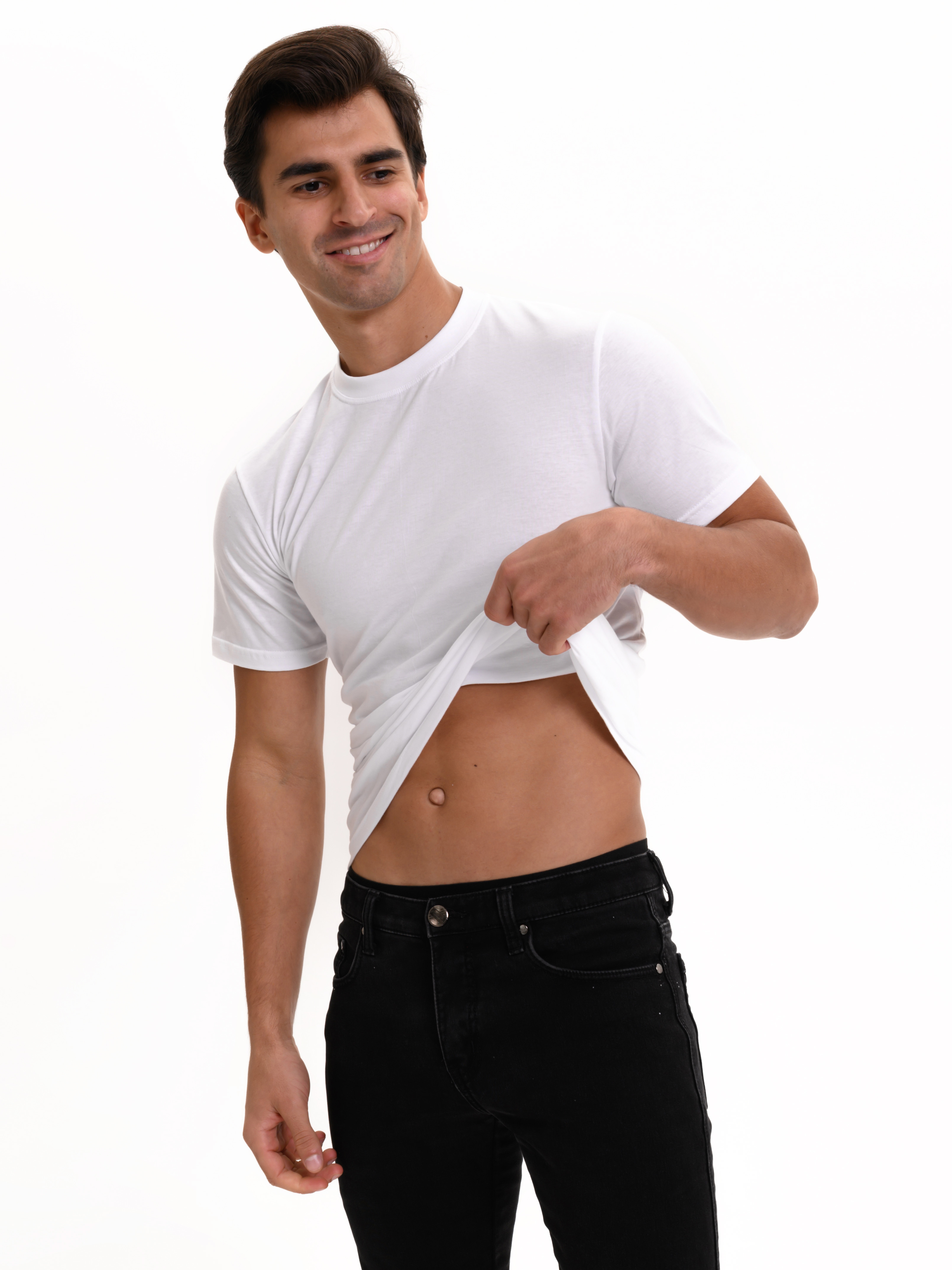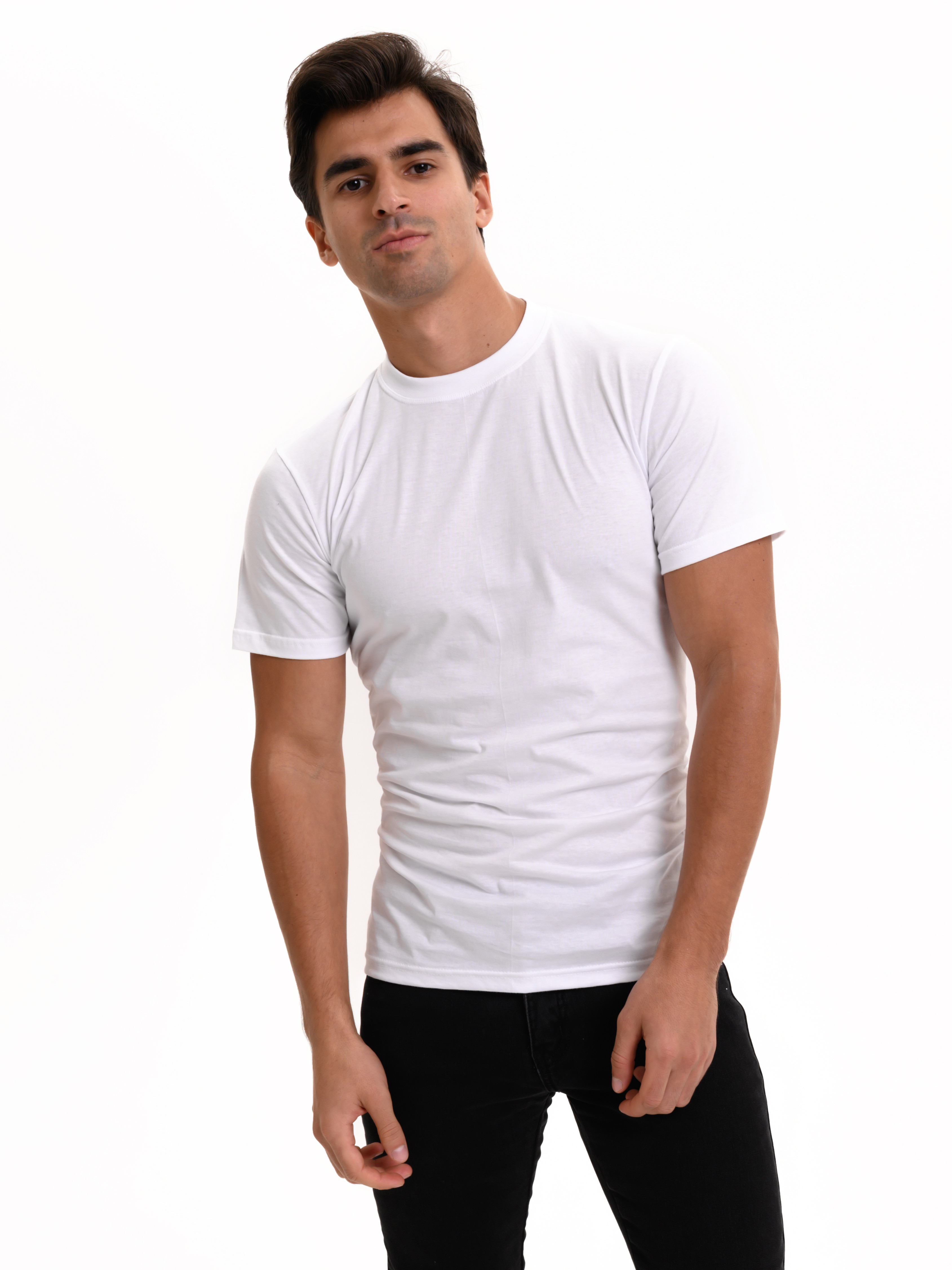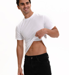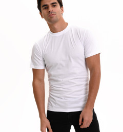 Классическая футболка Oztas с коротким рукавом и круглым вырезом. Приталенная, плотно прилегает к фигуре. Футболка изготовлена из 100% хлопка.
