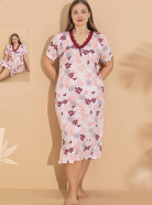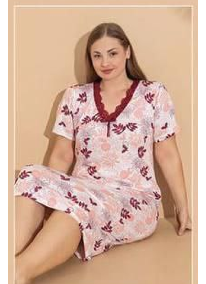 Ночная сорочка выполнена из мягкого и приятного на ощупь материала — смеси хлопка и эластана, обеспечивающей комфорт и свободу движений. Украшена элегантным кружевным декором на груди, придающим изделию особую женственность и привлекательность. Модель предназначена для больших размеров, подчеркивая красоту фигуры каждой женщины. Идеально подходит для уютных домашних вечеров и комфортного отдыха.