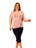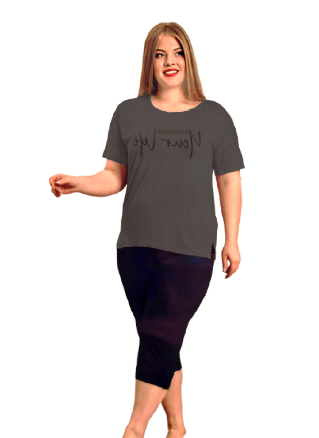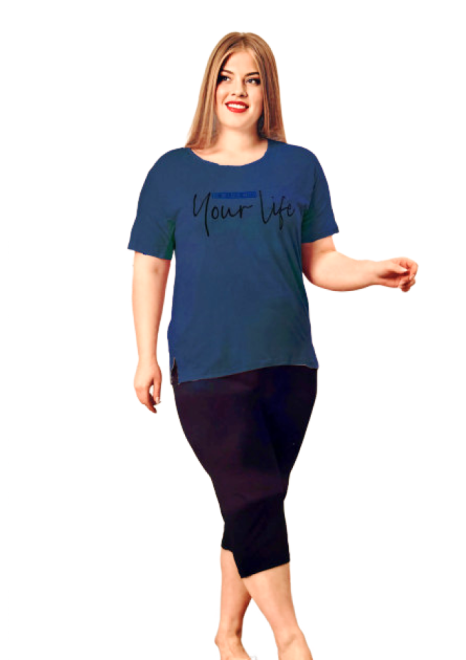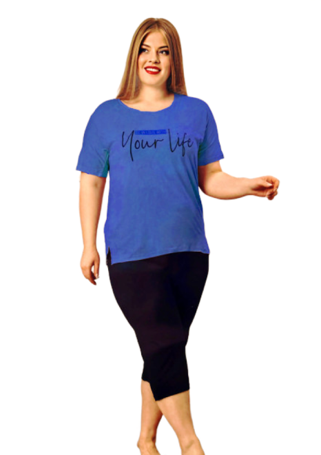 Домашний женский комплект выполнен в классическом стиле и состоит из двух элементов: удлинённой футболки и удобных бриджей. Основной материал изделия — качественный натуральный хлопок (95%), который обеспечивает комфорт и мягкость ткани, а также прекрасно пропускает воздух, поддерживая оптимальный микроклимат кожи. Дополнительные 5% лайкры придают вещи лёгкую растяжимость, благодаря которой одежда идеально садится по фигуре, не сковывая движения. Комплект подойдёт для комфортного отдыха дома, занятий йогой или лёгкой домашней активности.