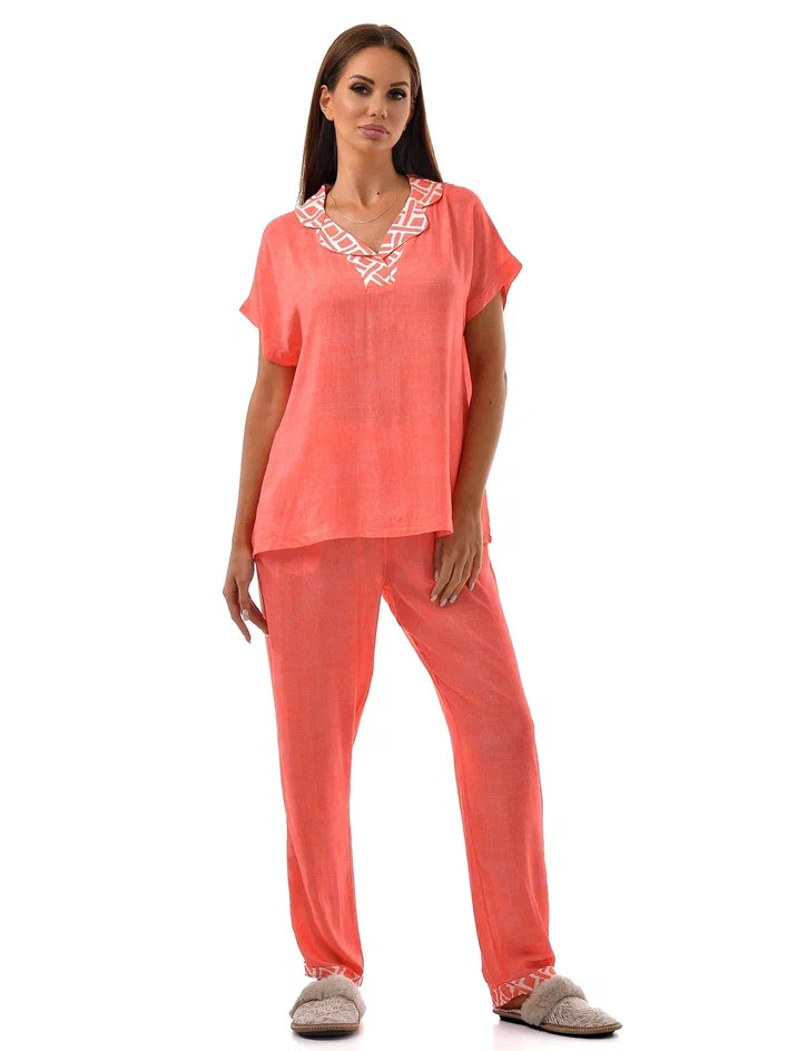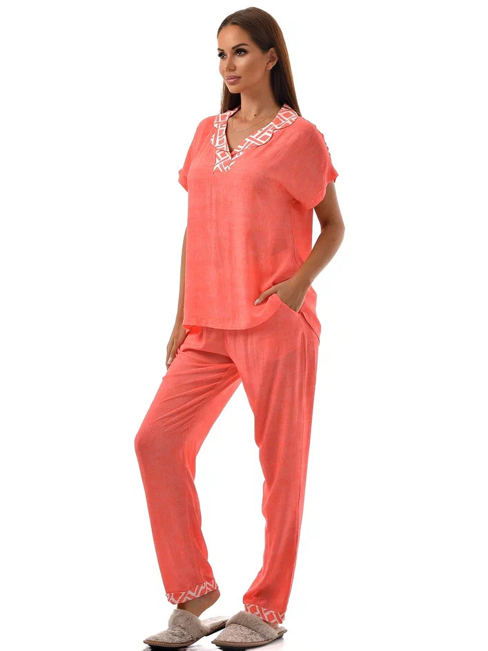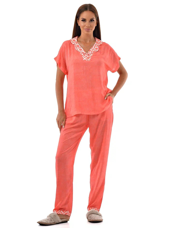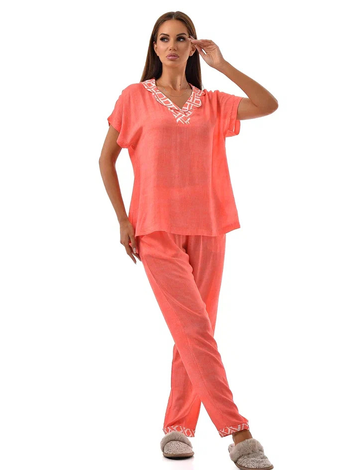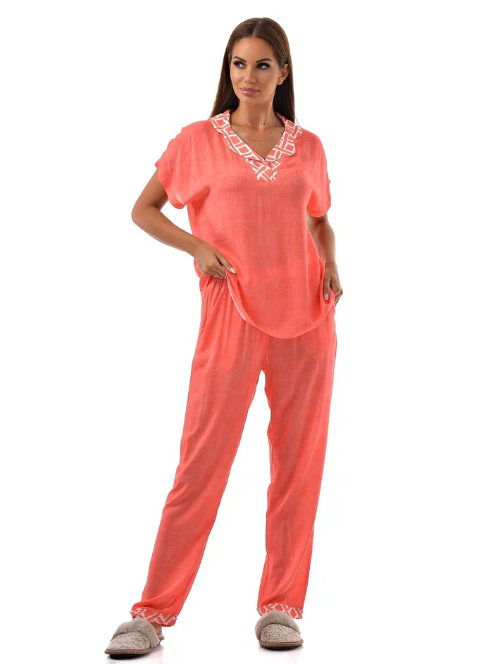 Женский комплект с футболкой с коротким рукавом и широкими укороченными брюками. Тонкая легкая ткань - 100% вискоза.