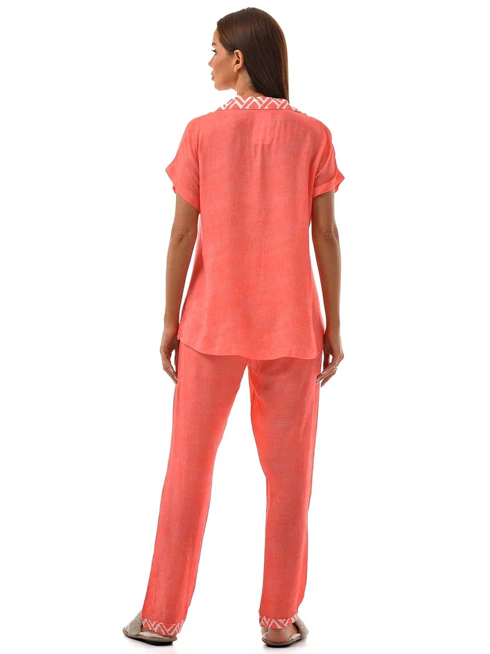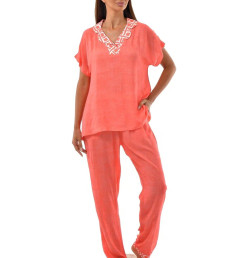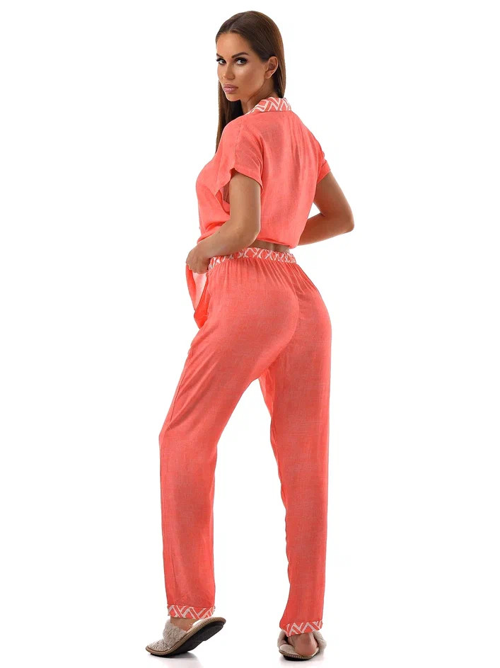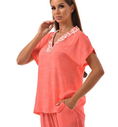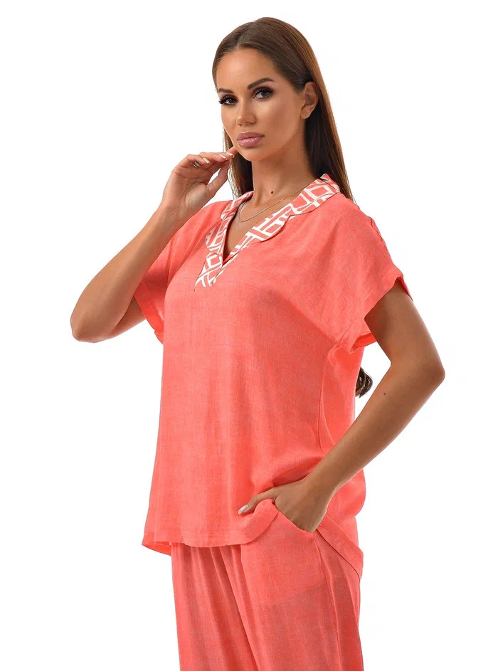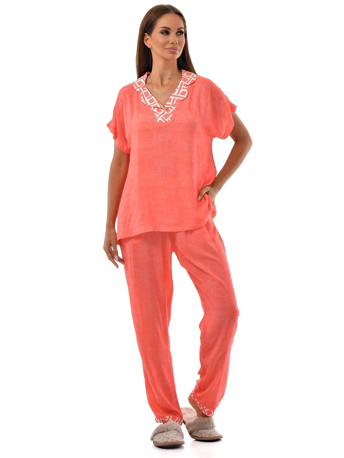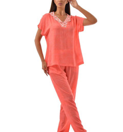 Женский комплект с футболкой с коротким рукавом и широкими укороченными брюками. Тонкая легкая ткань - 100% вискоза.