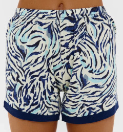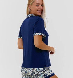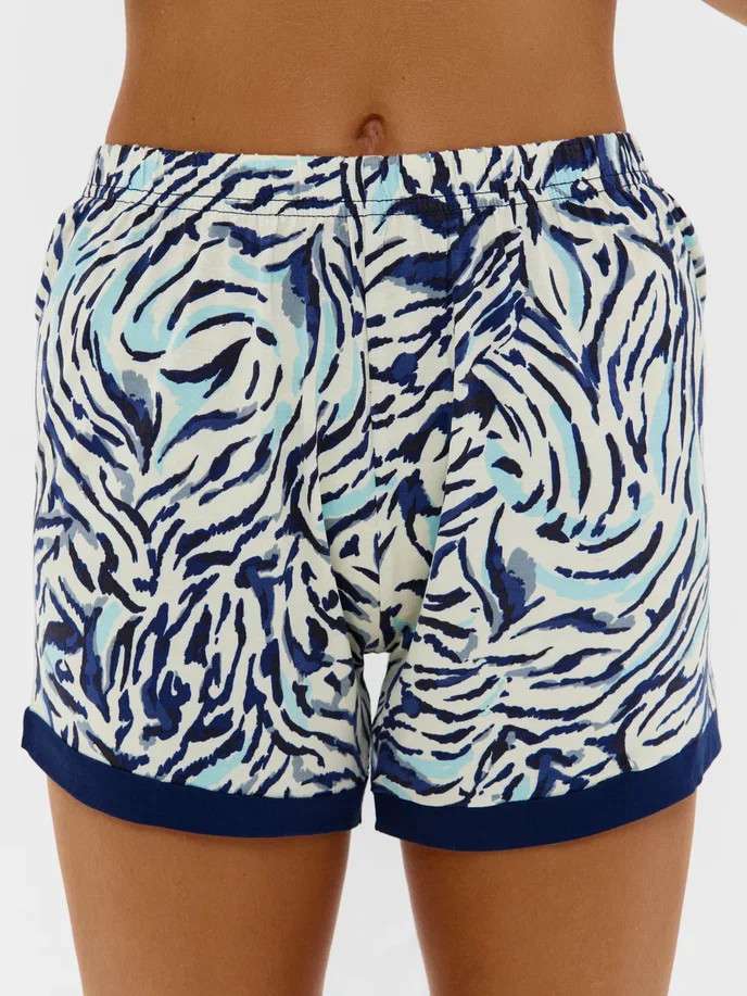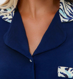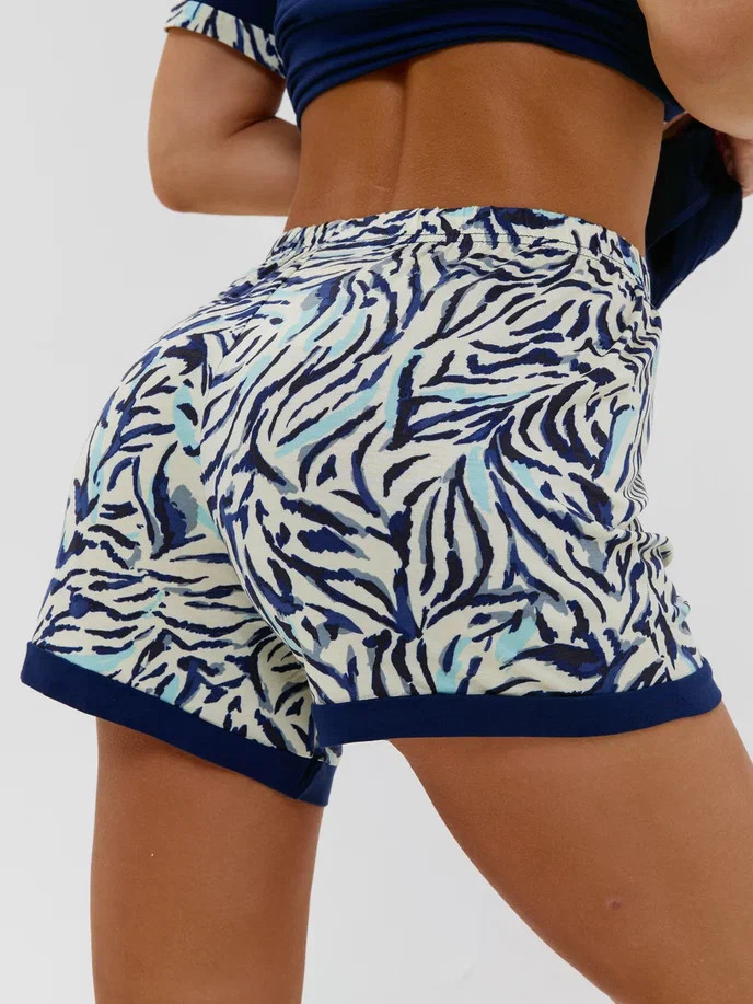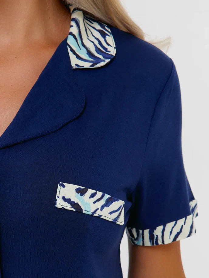 Женский комплект с рубашкой с коротким рукавом на пуговицах и шортами.