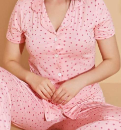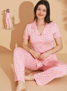 Представляем вашу новую любимую пижаму! Этот комплект состоит из рубашки с короткими рукавами и свободных брюк. Рубашка с отложным воротником застегивается на пуговицы, а брюки на резинке обеспечат максимальный комфорт. Идеальное сочетание: 92% хлопка для мягкости и 5% эластана для легкой эластичности.