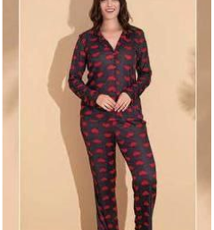 Комплект состоит из рубашки с длинным рукавами и свободных брюк. Рубашка с отложным воротником застегивается на пуговицы, а брюки на резинке обеспечат максимальный комфорт.