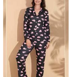 Комплект состоит из рубашки с длинным рукавами и свободных брюк. Рубашка с отложным воротником застегивается на пуговицы, а брюки на резинке обеспечат максимальный комфорт.