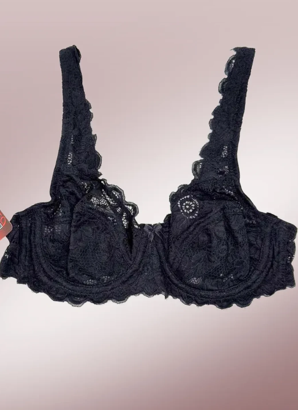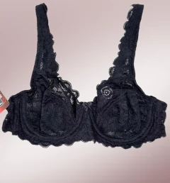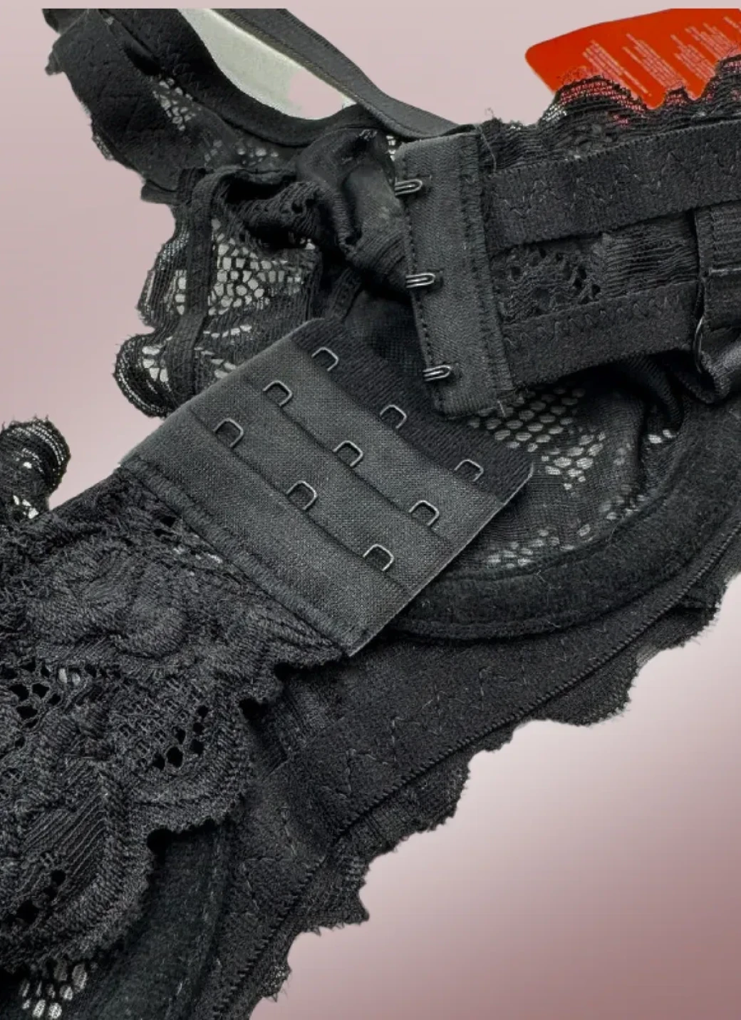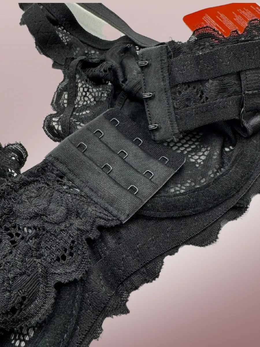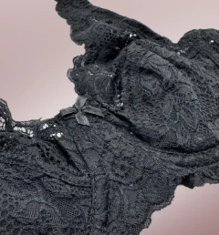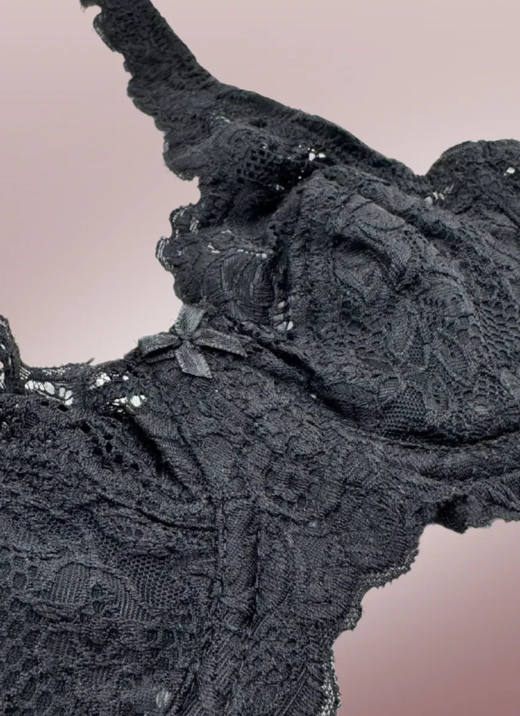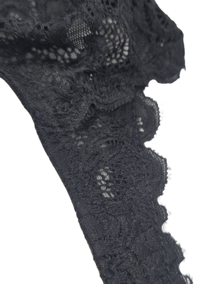 - Материалы: Основной особенностью является использование высококачественного кружева, придающего изделию воздушность и легкую роскошь. Выполнен из мягкого черного кружева, способствующего созданию утонченного образа и комфортной посадки.