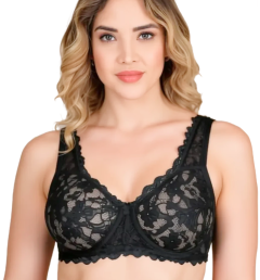 - Конструкция: Бюстгальтер оснащен мягкими чашечками с подкладкой, на косточках, что позволяет обеспечить максимальную гибкость и адаптацию к естественной форме груди.