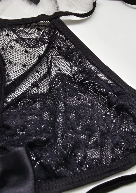 Комплект эротического кружевного белья состоит из высококачественных материалов, которые обеспечивают комфорт и удобство ношения.