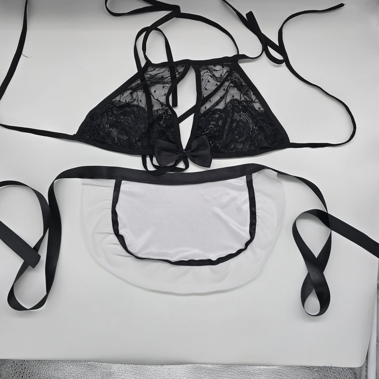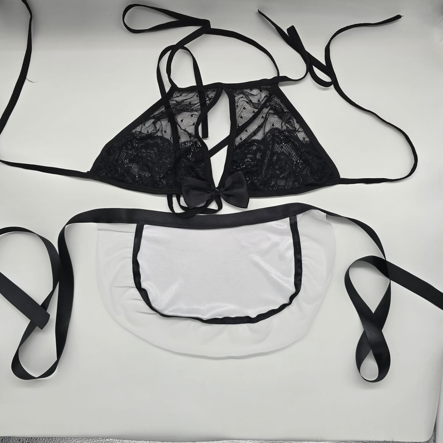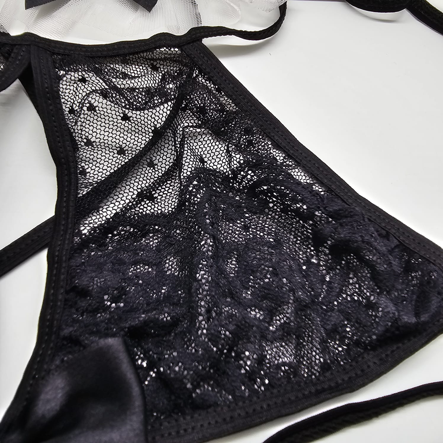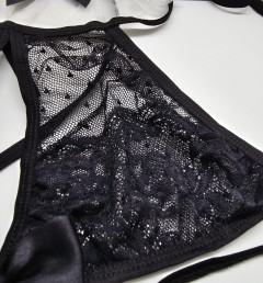 В комплект входит бюстгальтер - мягкая прозрачная чашка. Трусики, пояс-подвязка.