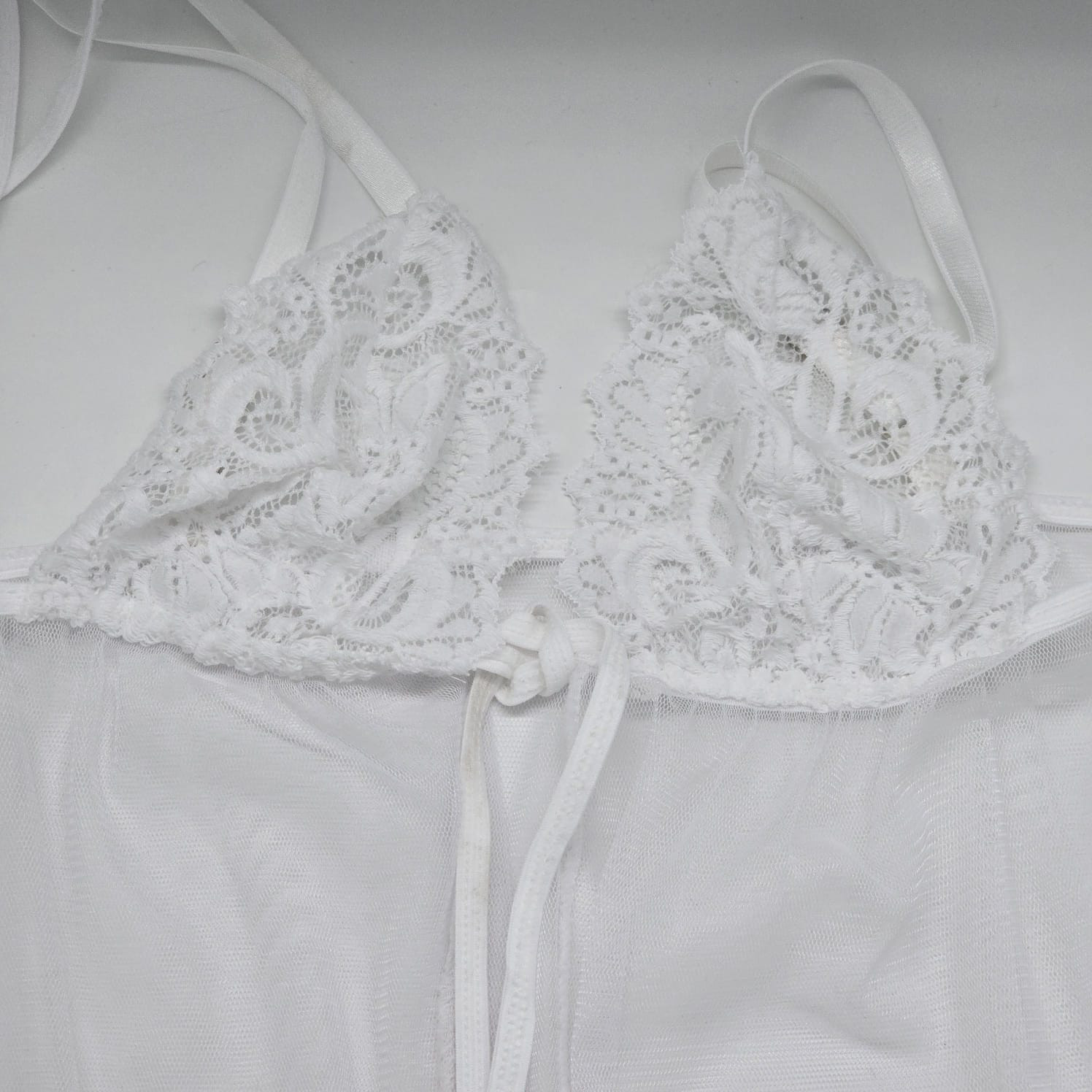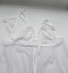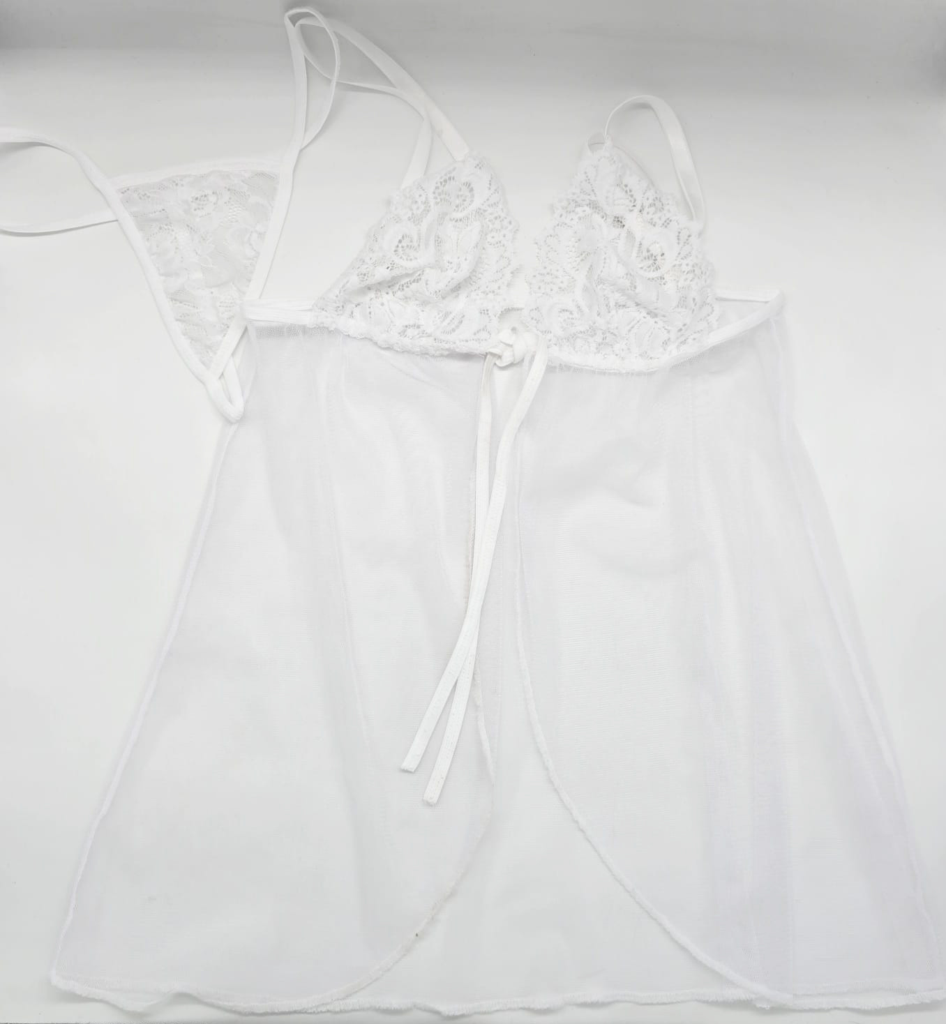 В комплект входит прозрачный пеньюар и трусики.
