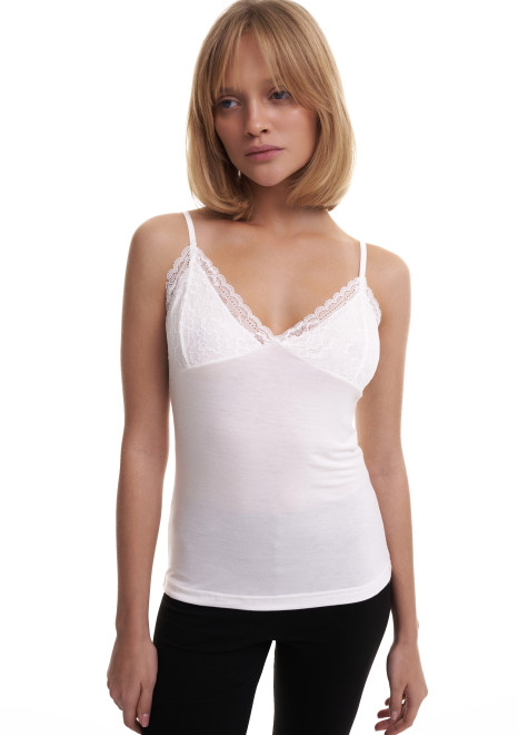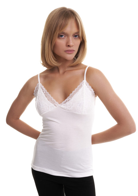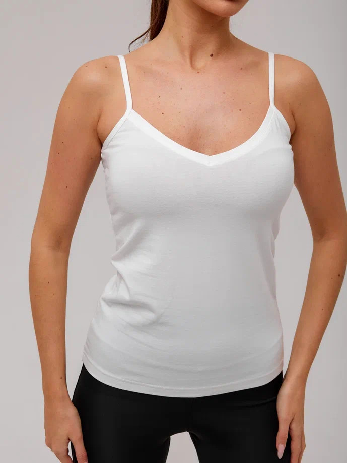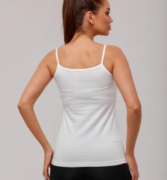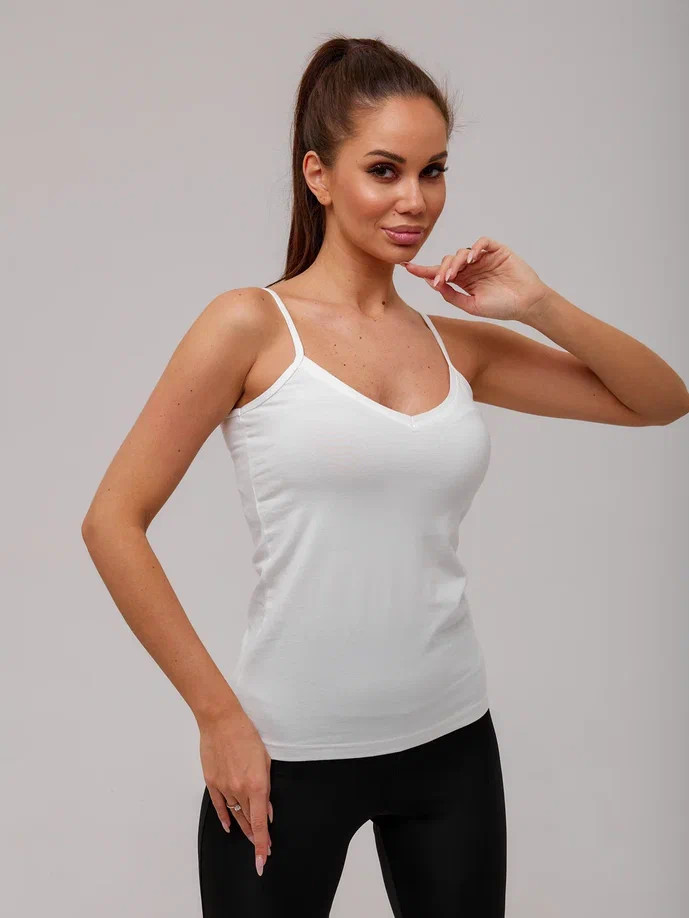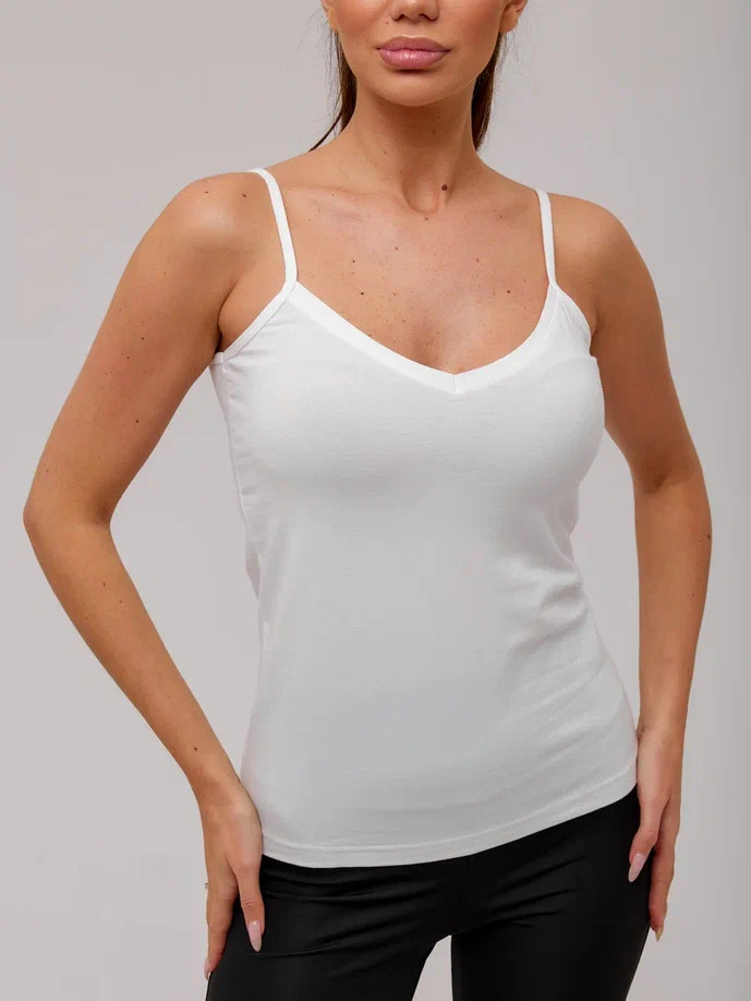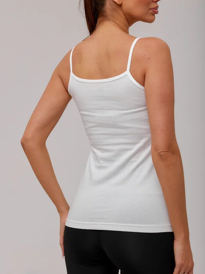Женская майка Berrak кремового цвета на тонких бретелях. Приталенная, плотно прилегает к фигуре. Майка изготовлена из 95% хлопка pamuk и 5% эластана.