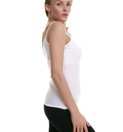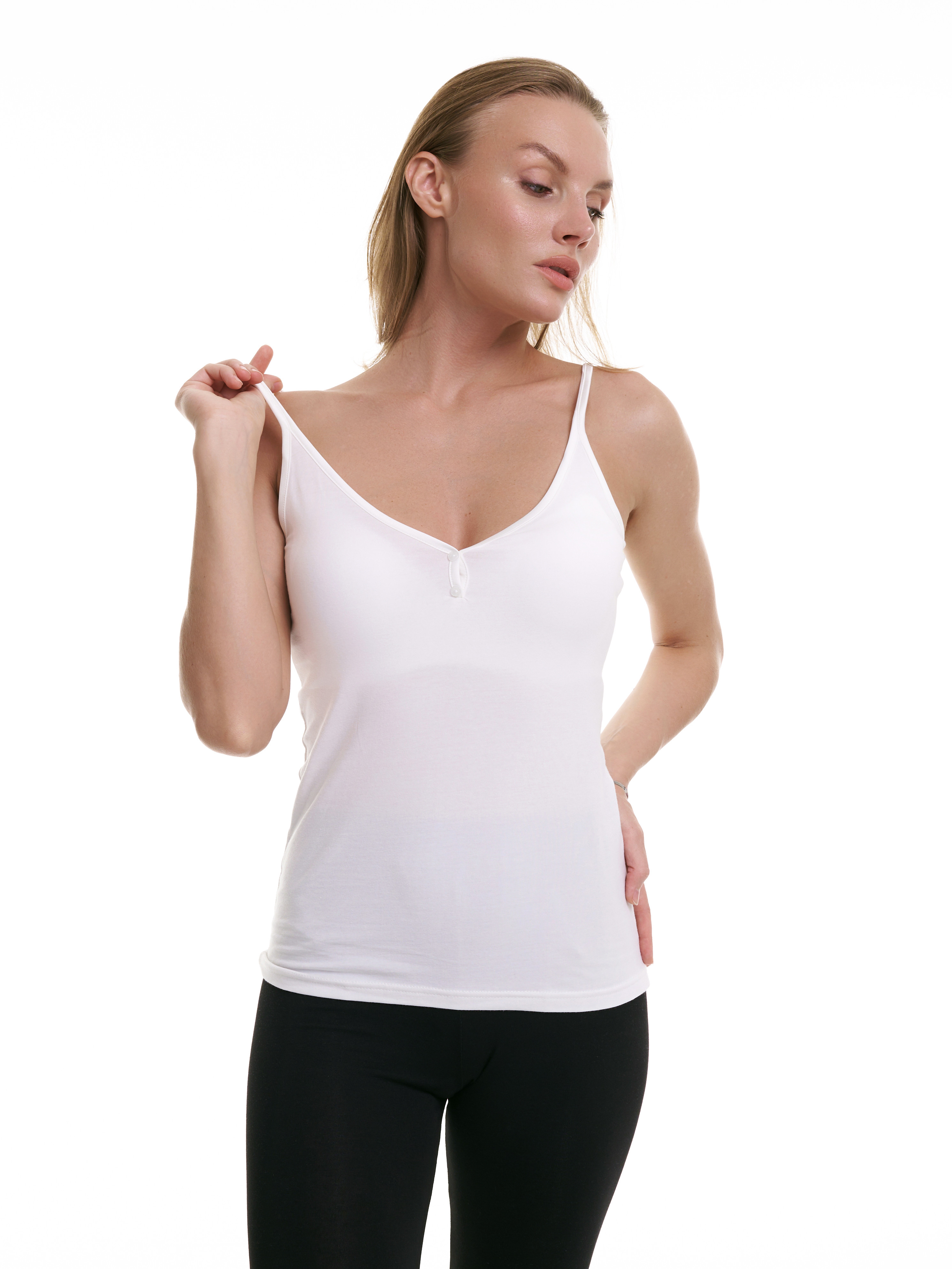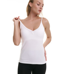 Женская майка Berrak кремового цвета на тонких бретелях. Горловина и бретельки отделаны атласной окантовкой. Изделие украшено пуговками. Майка изготовлена из 95% хлопка pamuk и 5% эластана.