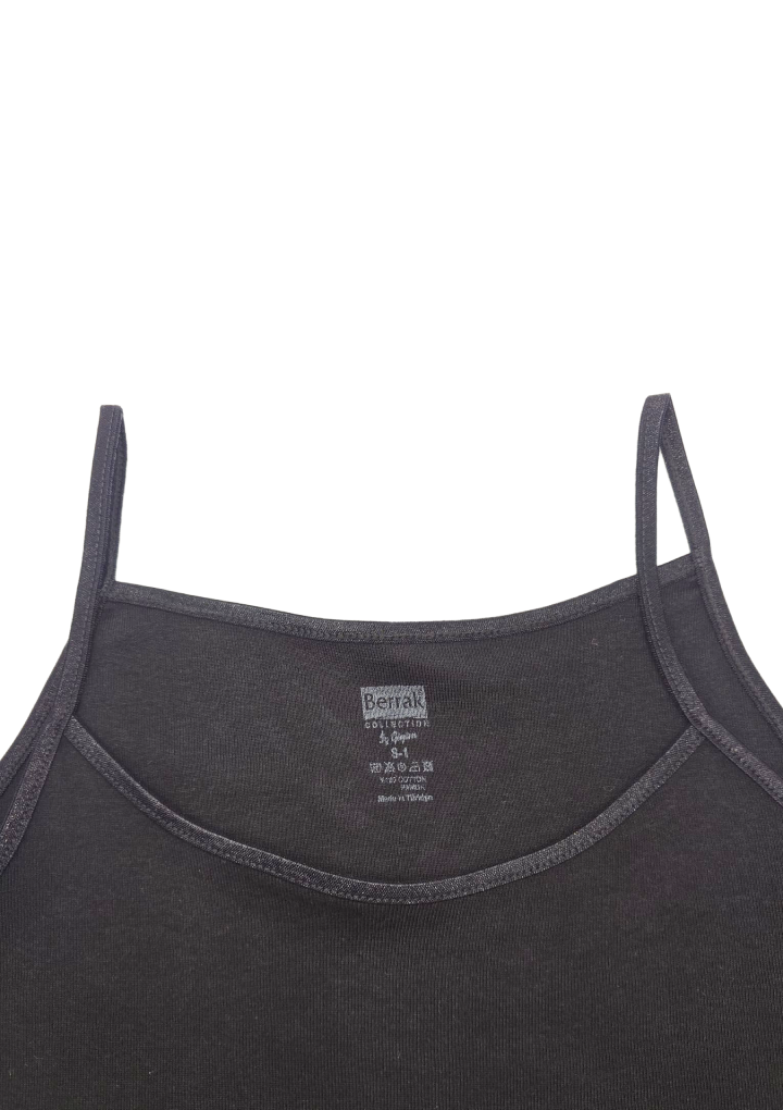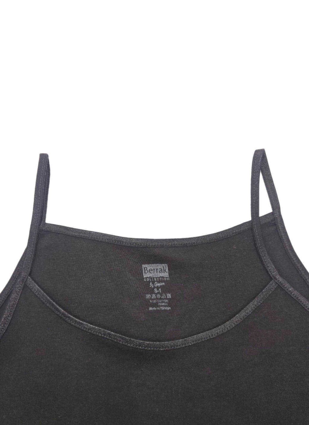 Майка женская бренда Berrak выполнена из высококачественного полотна 100% Хлопка - трикотаж рибана, отлично тянется и обеспечивает удобство и комфорт в повседневной носке. Элегантная майка с тонкими нерегулируемыми бретельками является необходимым и универсальным элементом гардероба, который прекрасно сочетается со стилем любой одежды.