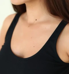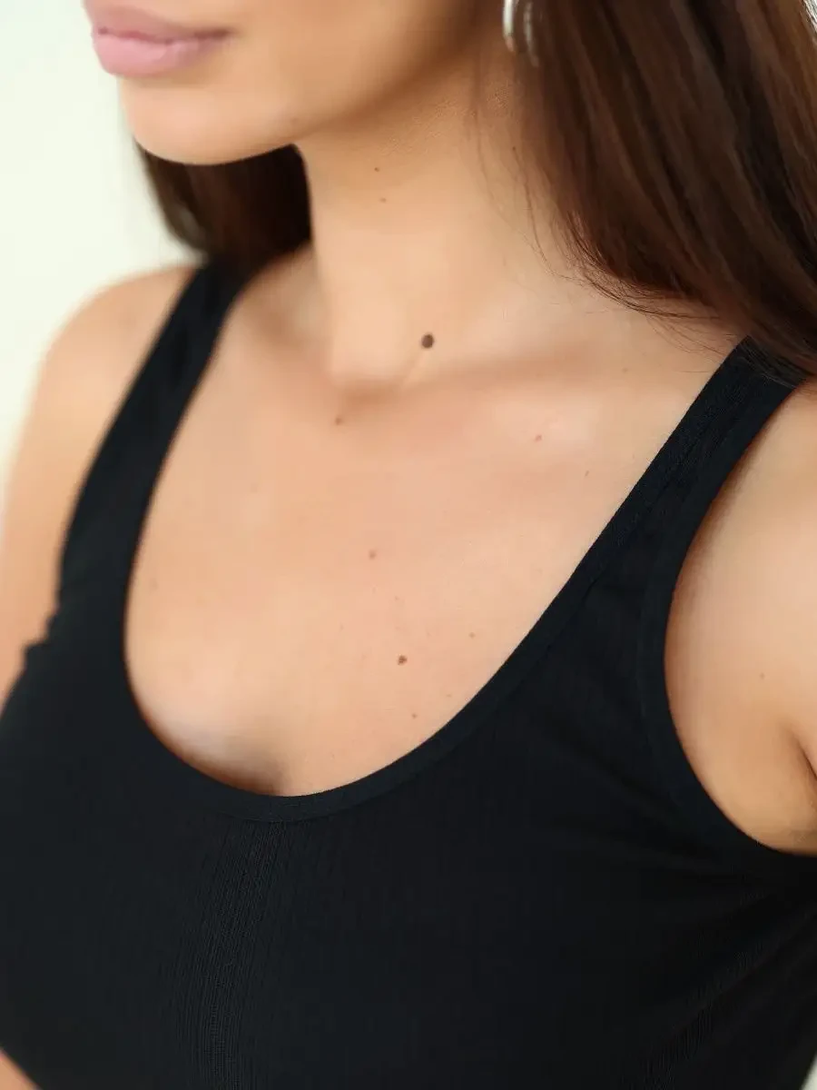 Женская майка Berrak черного цвета на широких лямках с классической спиной. Приталенная. Ткань в рубчик. Майка изготовлена из 50% хлопка pamuk и 50% модала.