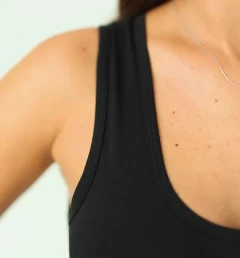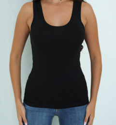 Женская майка Berrak черного цвета на широких лямках с классической спиной. Приталенная, плотно прилегает к фигуре. Майка изготовлена из 95% хлопка pamuk и 5% эластана.