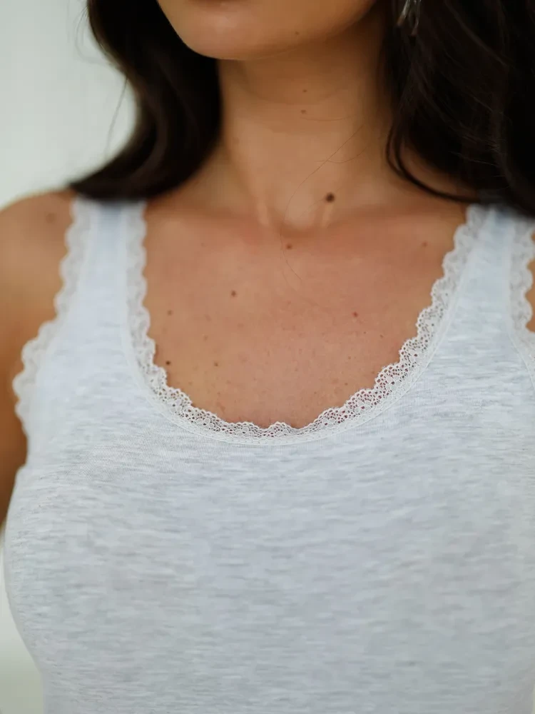 Особое внимание стоит уделить кружевной отделке по краю верха изделия. Этот изысканный элемент придает майке нотку романтики и женственности, делая ее подходящей как для повседневного, так и для вечернего образа. С такой майкой вы всегда будете выглядеть стильно и привлекательно, независимо от обстановки.
