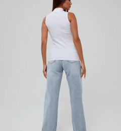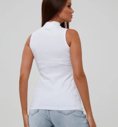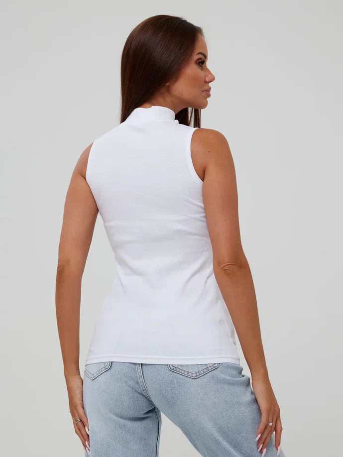 Женская майка Kota белого цвета с воротничком-стойкой. Приталенная, ткань в рубчик. Майка изготовлена из 93% хлопка и 7% эластана.