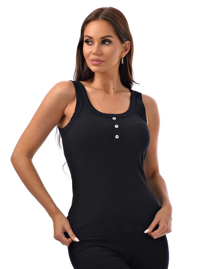 Женская майка Kota на широких лямках, декорированная пуговками. Приталенная.