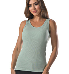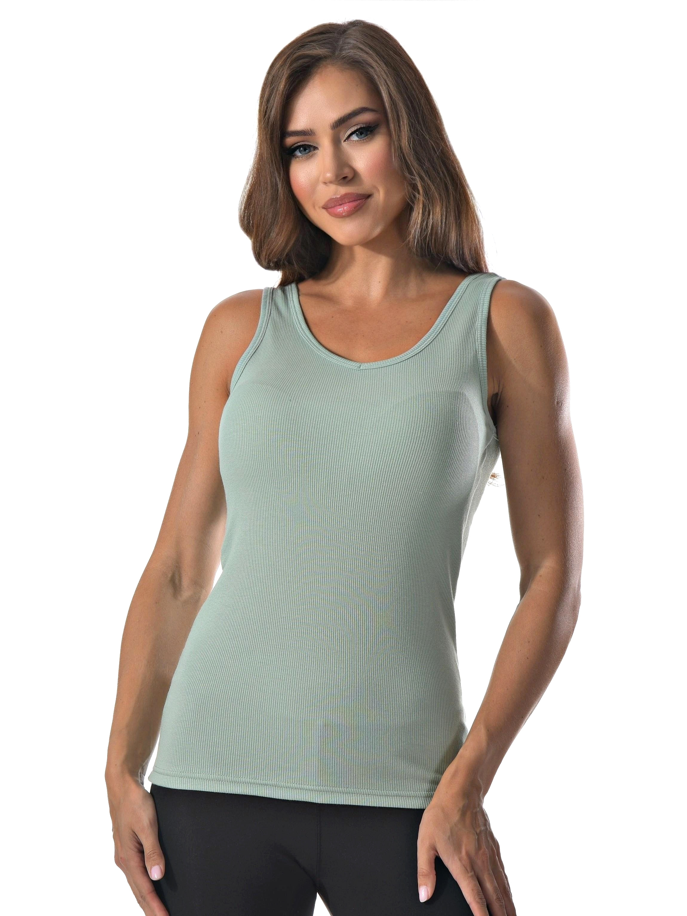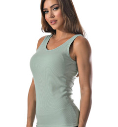 Женская майка Kota на широких бретелях с вшитыми чашками из тонкого поролона. Приталенная. Майка изготовлена из хлопка, модала и эластана.