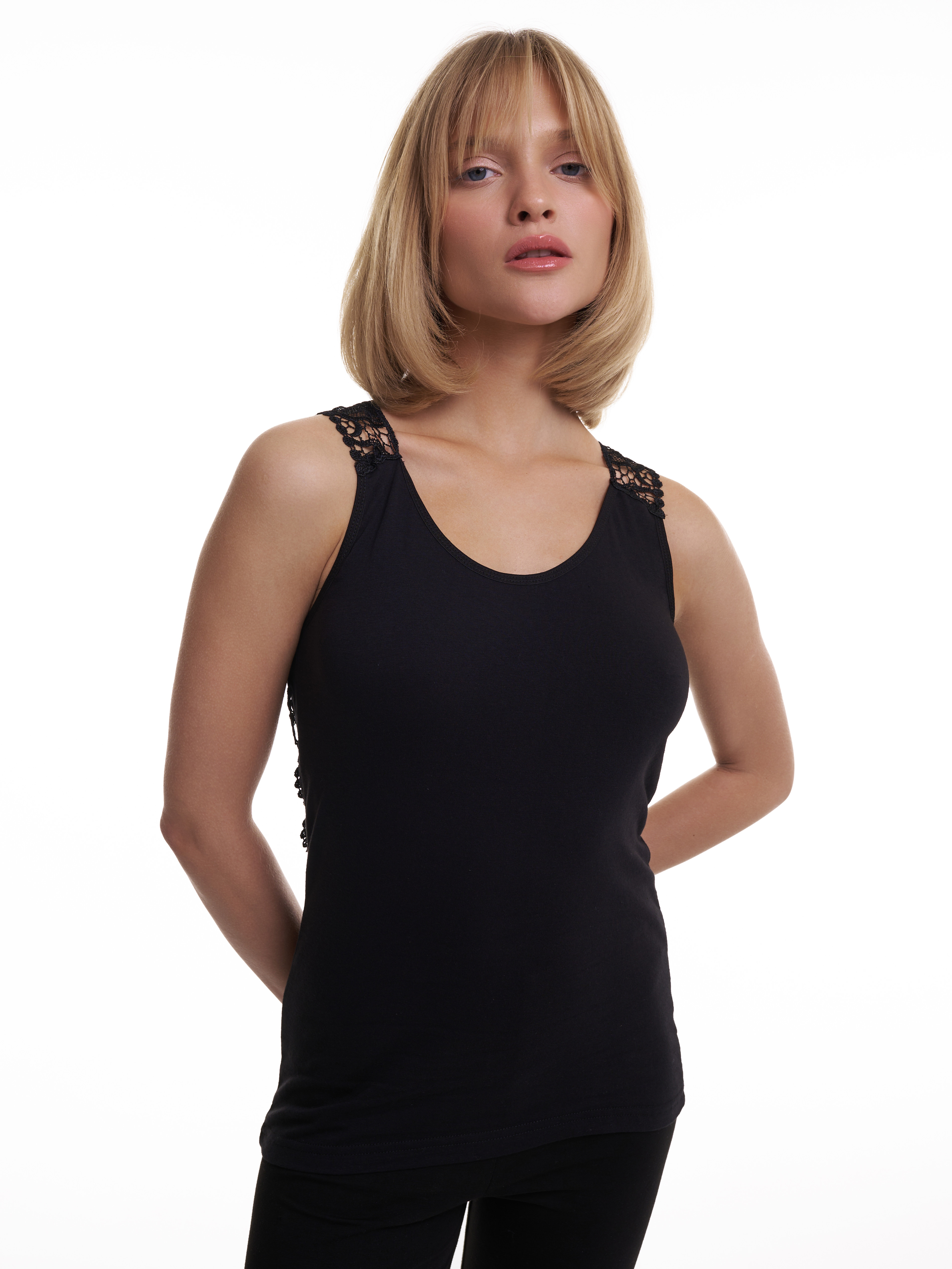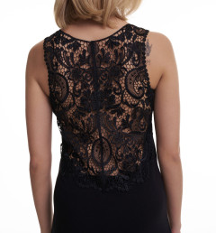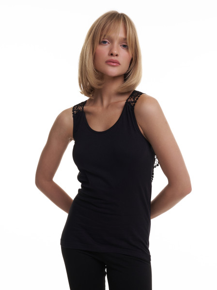 Женская майка с ажурной вышивкой на спине.