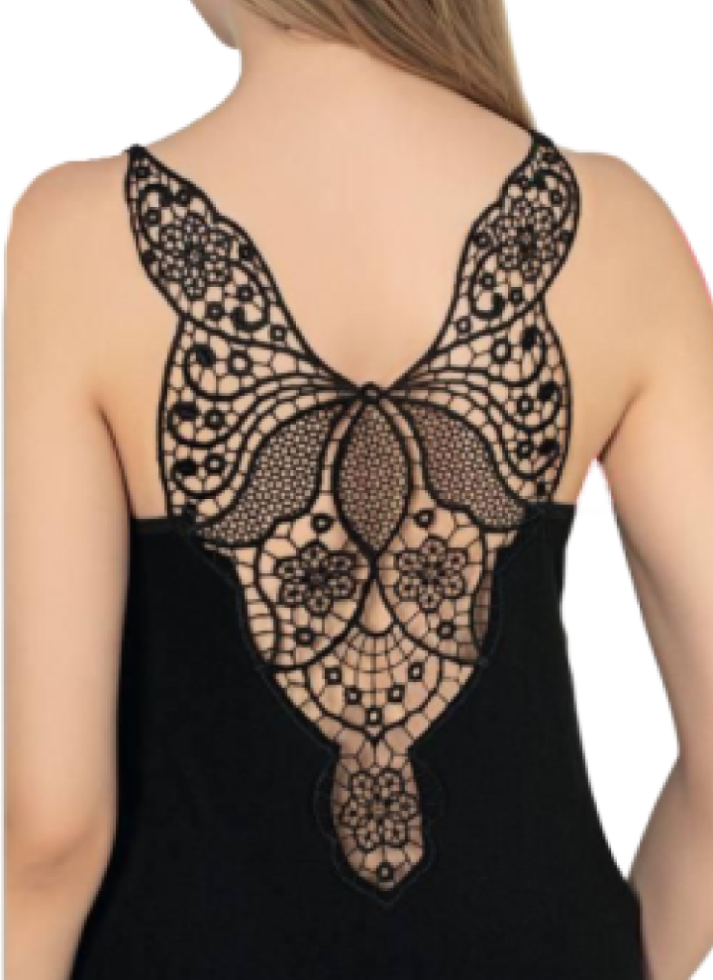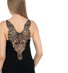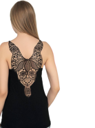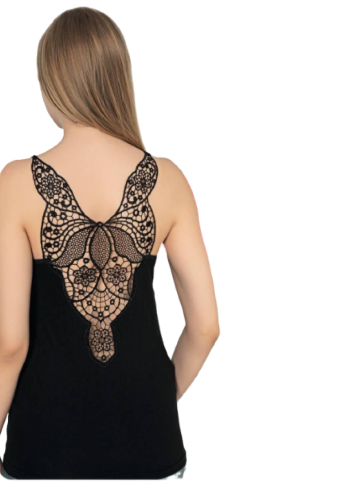 Эта женская майка — воплощение утончённости и удобства.Черный цвет и ажурная вышивка на спине делают её по-настоящему изящной и женственной. Модель выполнена из качественного материала: 90% вискозы и 10% эластана, благодаря чему майка приятна к телу, хорошо тянется и не сковывает движений.