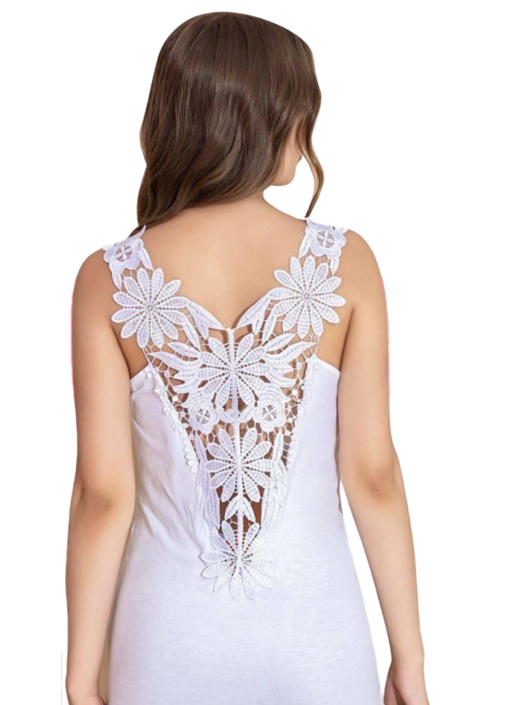 - Дизайн: Ажурная вышивка на спине придает майке особый шарм и индивидуальность.