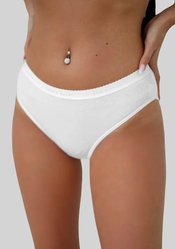 Трусы женские из натурального хлопка с завышенной посадкой от турецкого бренда Berrak порадуют представительниц прекрасного пола. Удобное и практичное нижнее белье для женщин. Трусы - бикини с эластичной брендированный резинкой мягкие к телу и не сдавливают. Белье отлично подходит для повседневной носки и занятий спортом. Приятно прилегают к телу за счет качественного материала, не вызывают раздражения и позволяют коже дышать.