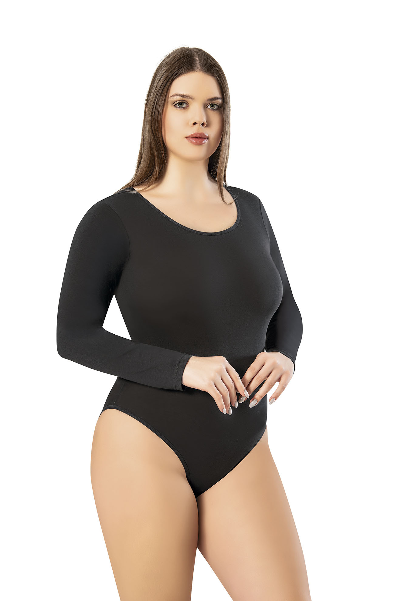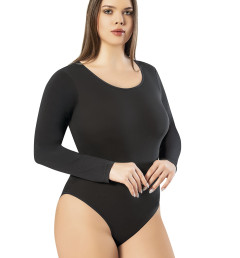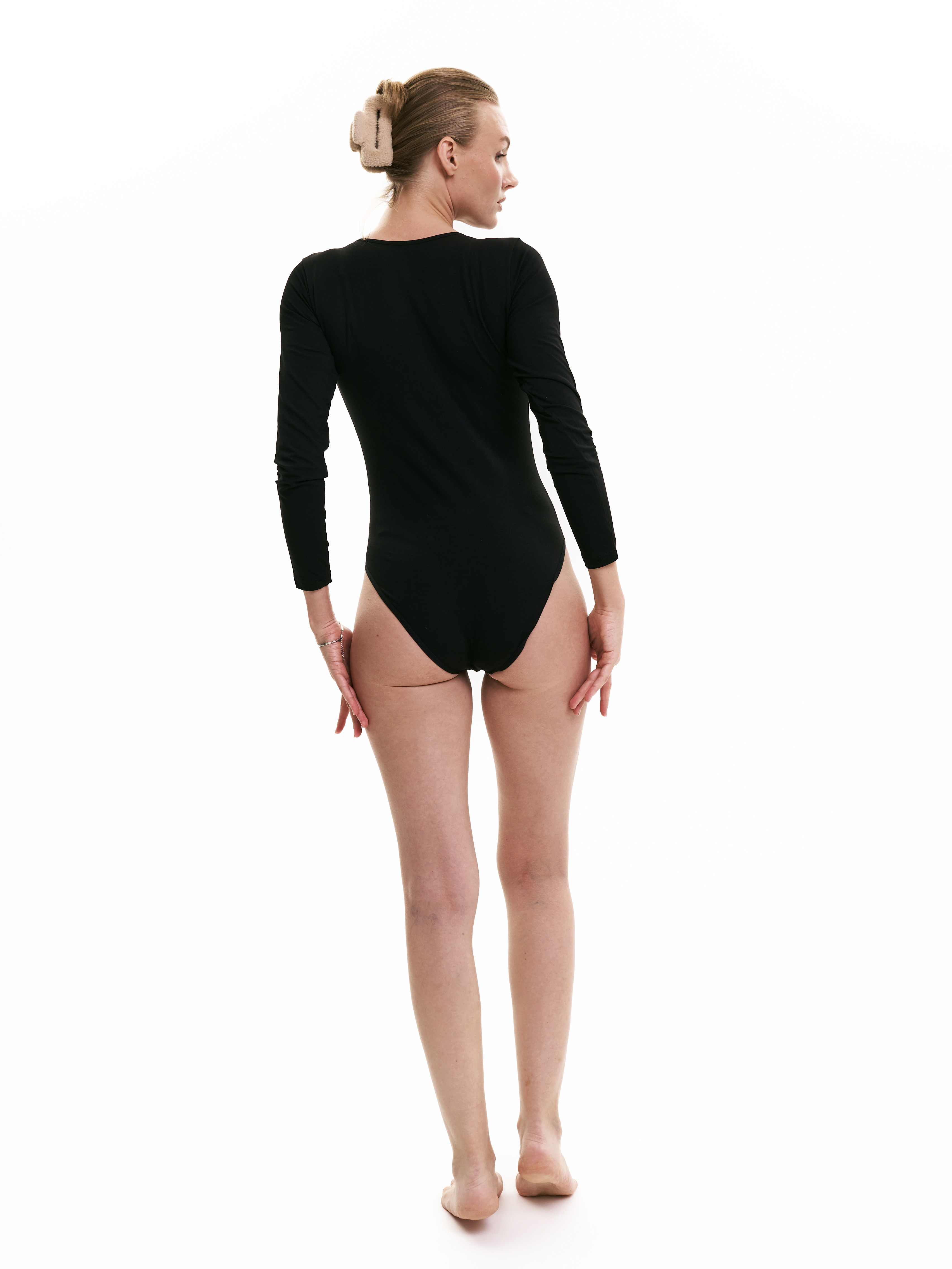 Классическое женское боди Kota черного цвета с длинными рукавами. Удобное крепление в виде 2 крючков. Боди изготовлено из 93% хлопка и 7% эластана.