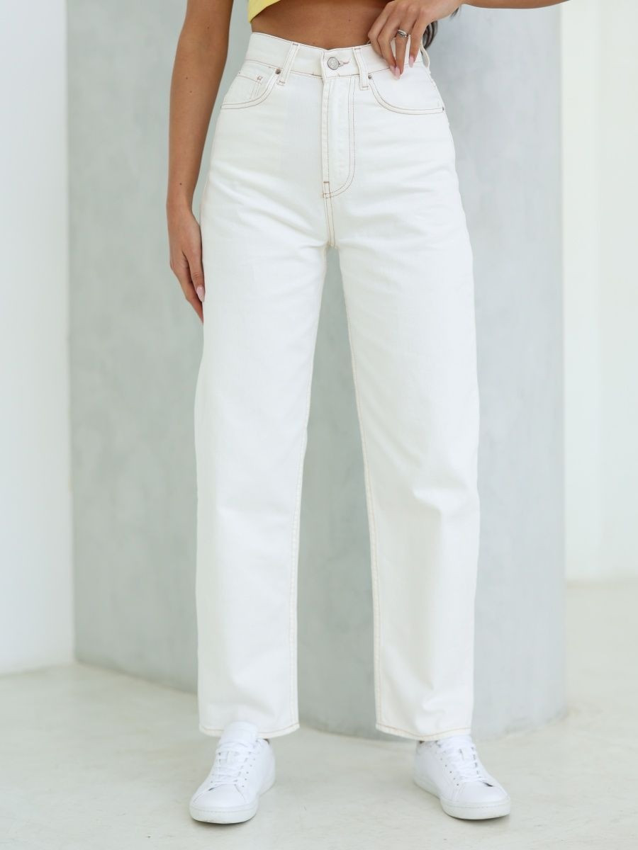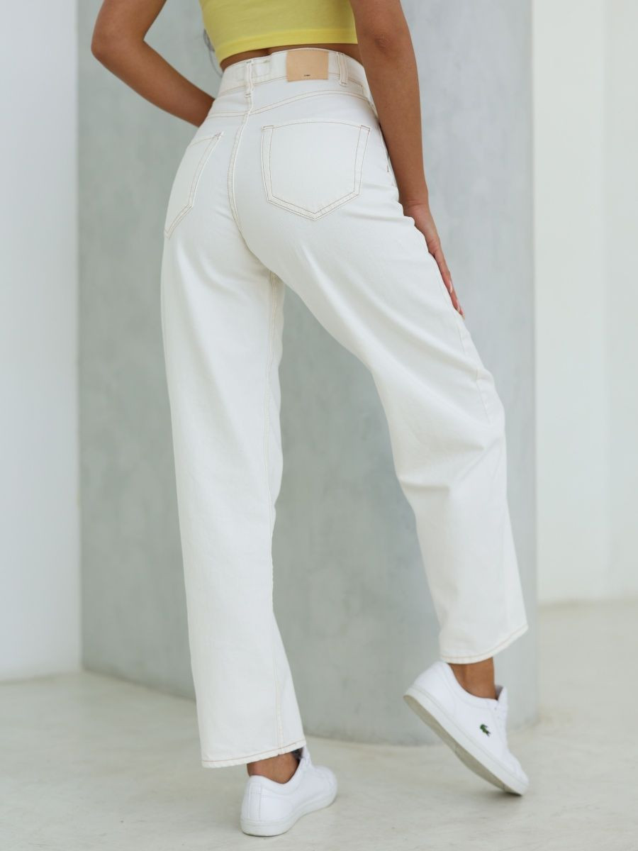 Молочный слоучи от CRACPOT — это как ванильное мороженое в мире джинсов: мягко, нежно и хочется носить всегда. Объемные ножки и зауженный низ — сочетание, которое делает тебя королевой комфорта и стиля.