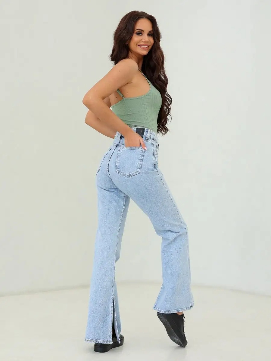 Полная длина 110, по внутреннему шву 82, ширина низа брючин 30 см. Размер на модели 25. ОТ-62-66 ОБ-90-94