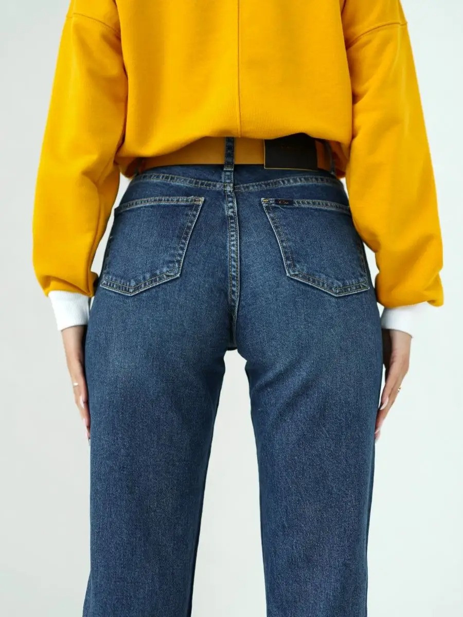 Высокая посадка, мягкий эластичный деним и культовый крой — идеальны для повседневного образа. Синий цвет сочетается с любой обувью и верхом. Джинсы сохраняют форму и цвет после стирок.