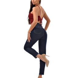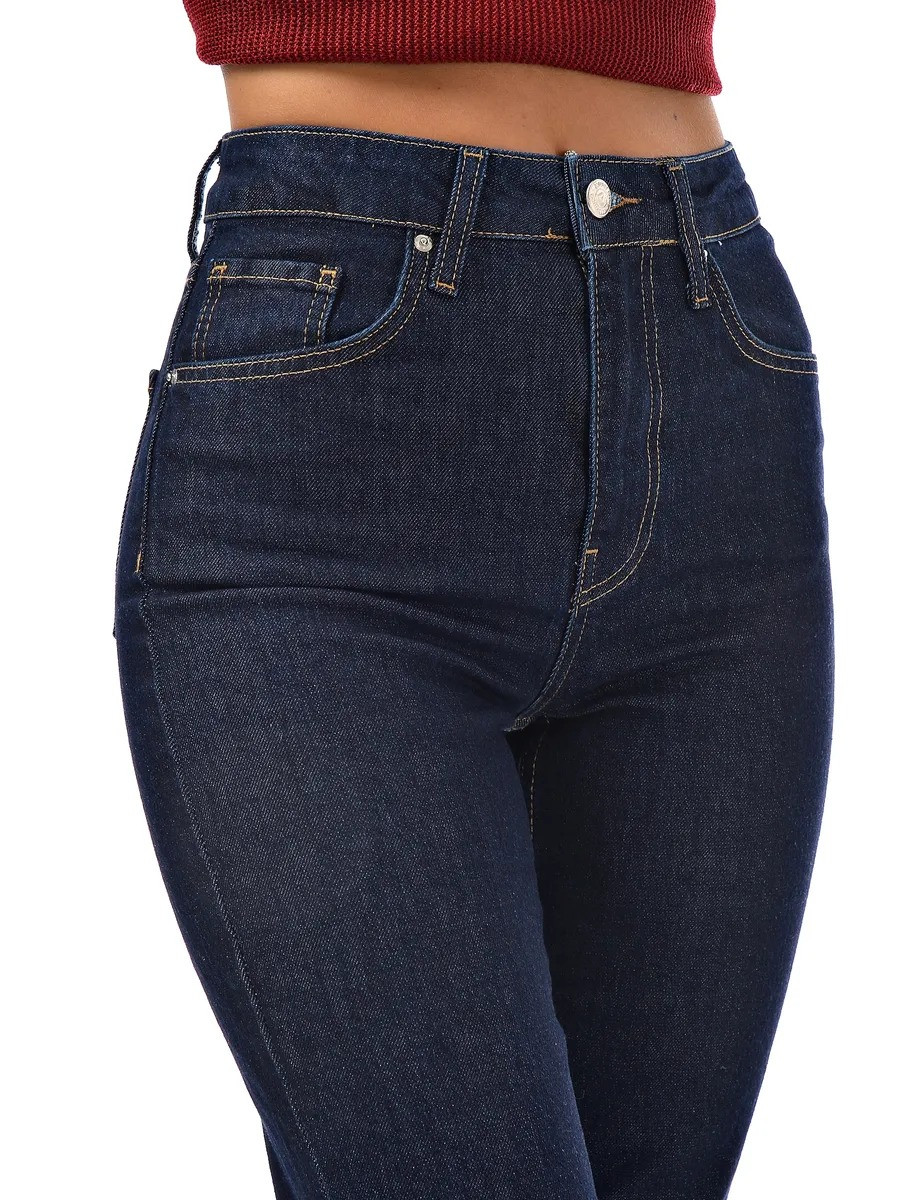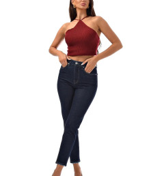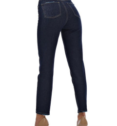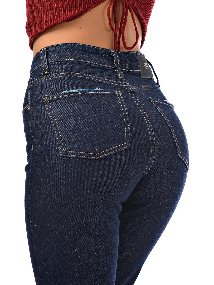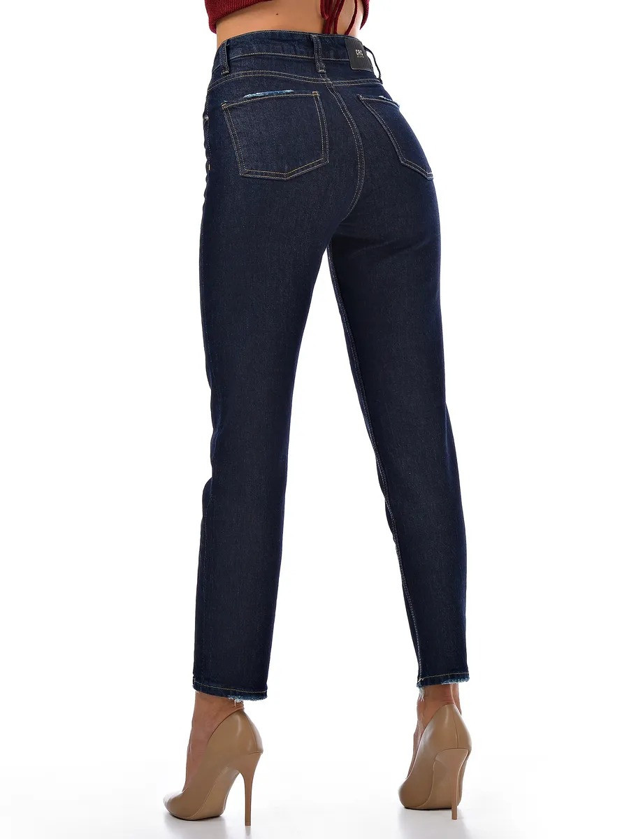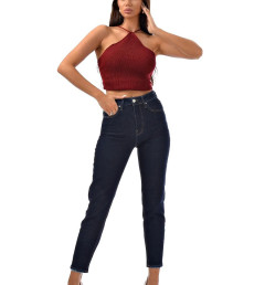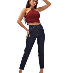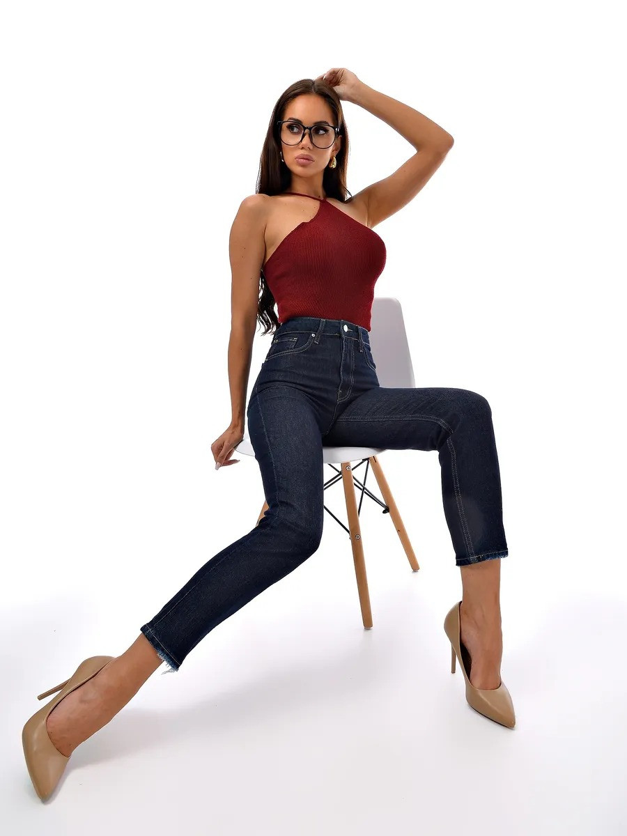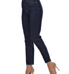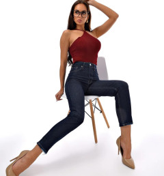 Тёмно-синий оттенок, эффект потертости и укороченный крой делают их идеальными как для офиса, так и для прогулки.