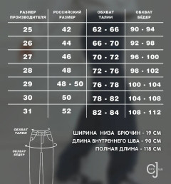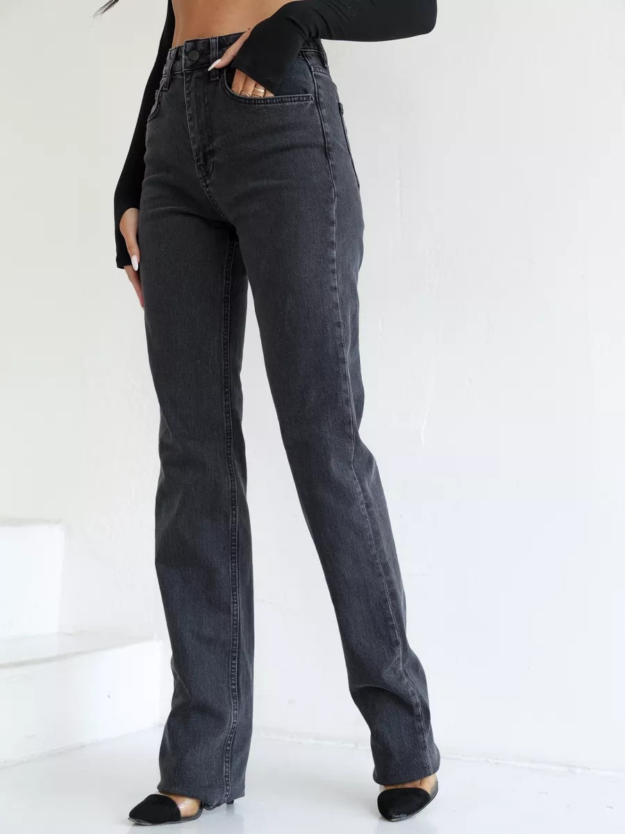 Длина 122 см и внутренний шов 90 см обеспечивают безупречную посадку для девушек ростом от 180 см. Высокая талия подчеркивает фигуру, а мягкий деним с добавлением эластана дарит комфорт на весь день.