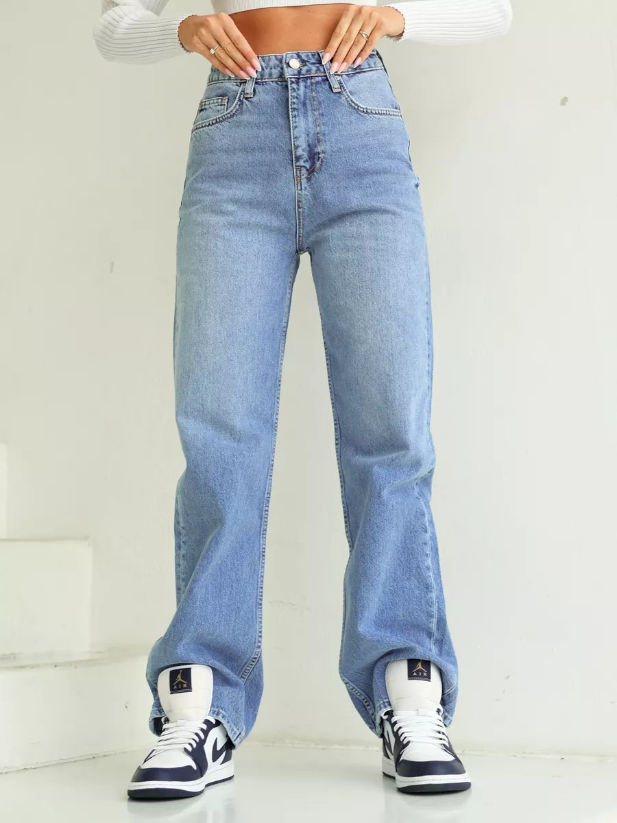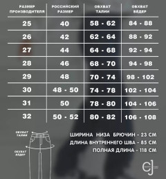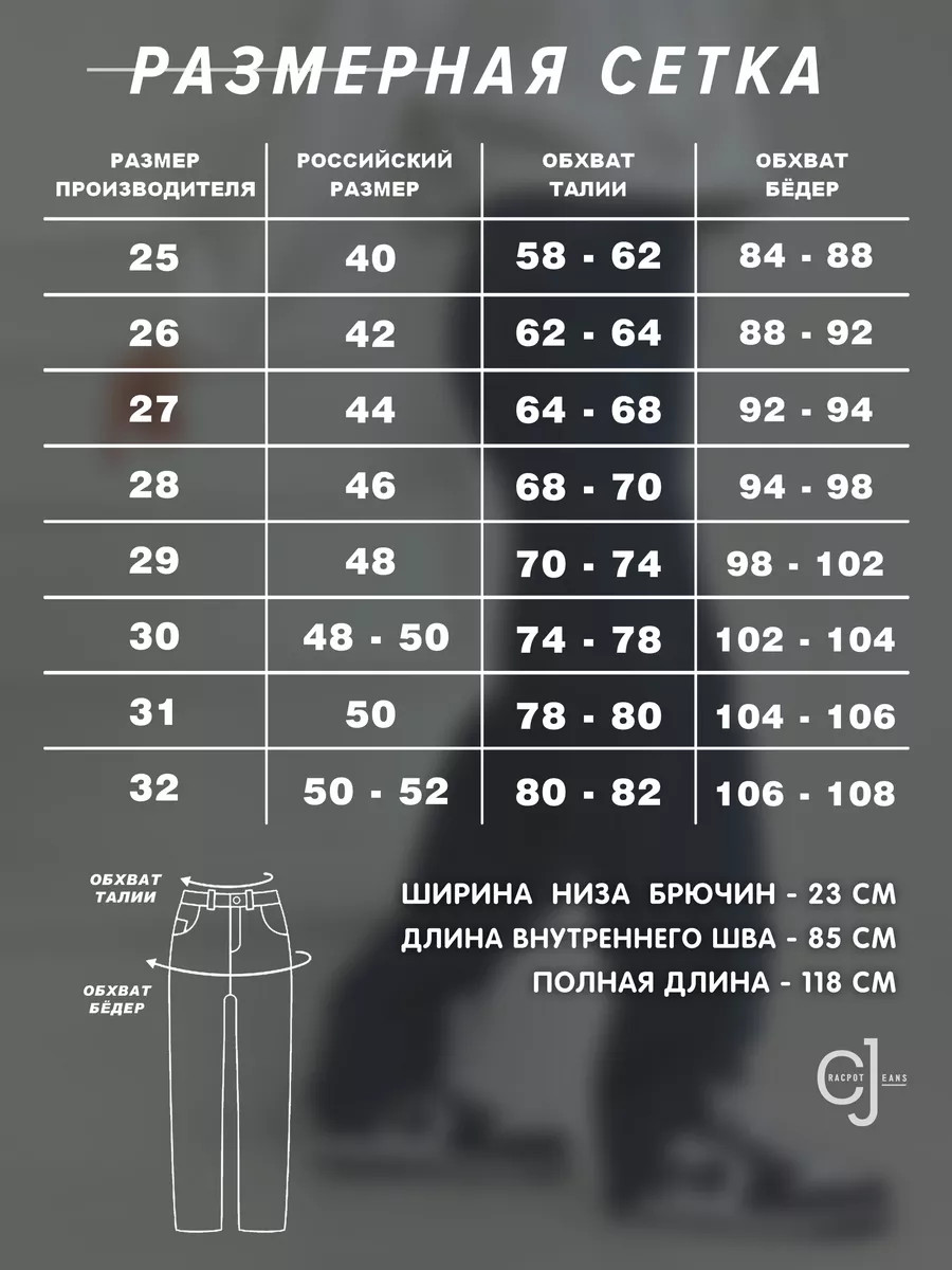 Джинсы длиной 118 см и внутренним швом 85 см — для тех, кто выше 170 см, но не выше 178 см . Материал — 100% хлопок, не тянутся, так что берите размер внимательно.