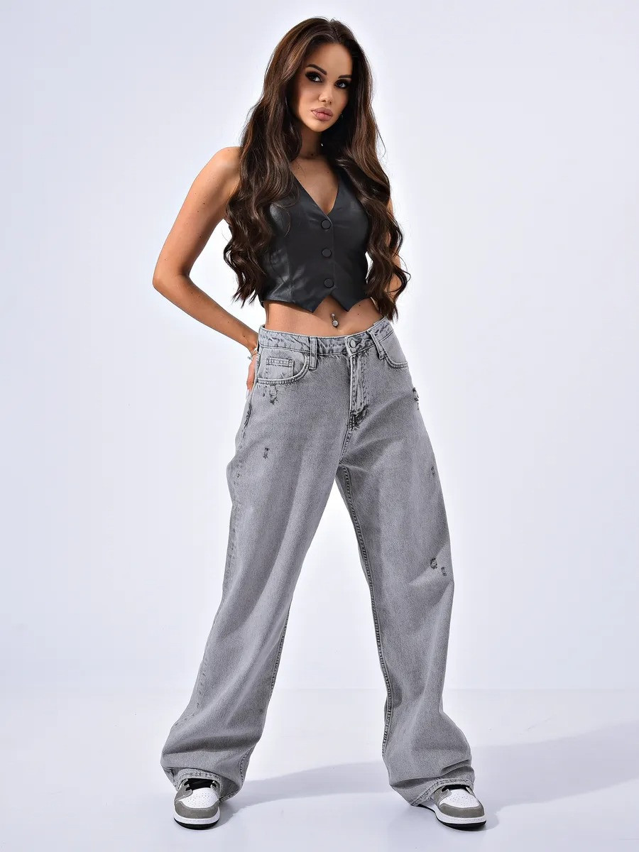 Рваные джинсы, которые умеют говорить «я стильная» без слов. CRACPOT знает, как сделать серый не скучным: потертости и рваные края — ваш секретный стильный ход.