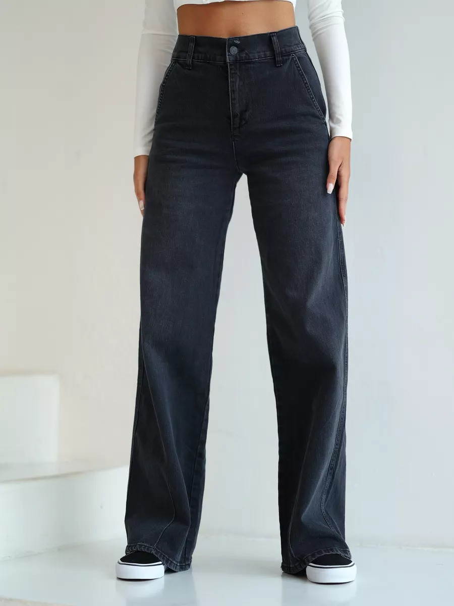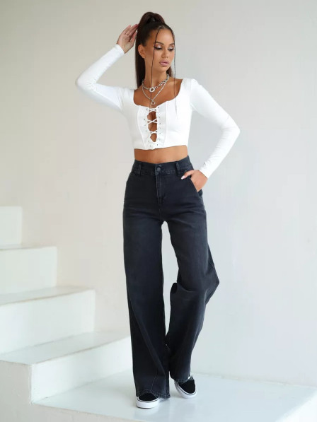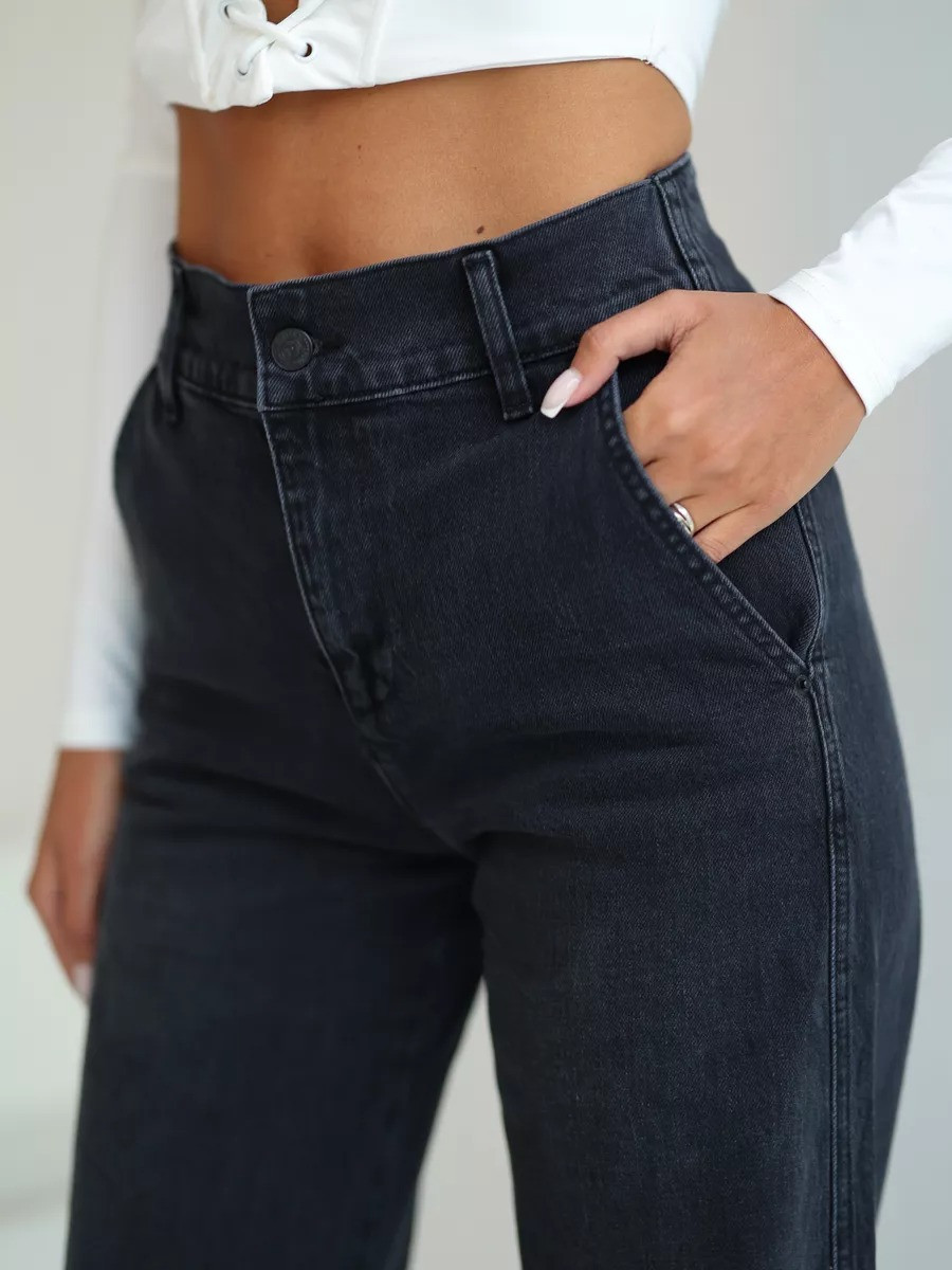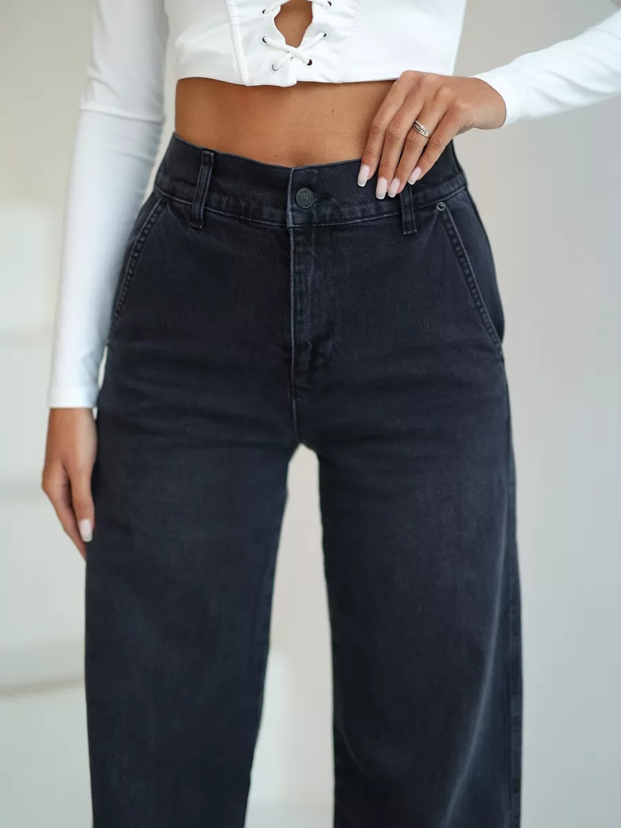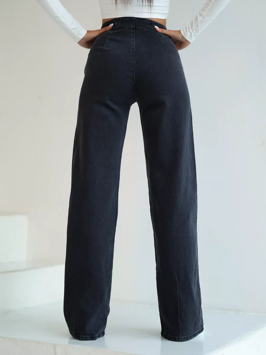Тёмно-серые джинсы палаццо CRACPOT — база нового уровня. Высокая посадка, плотный дышащий деним и идеальная ширина от бедра: создают выразительный силуэт и подчёркивают форму.