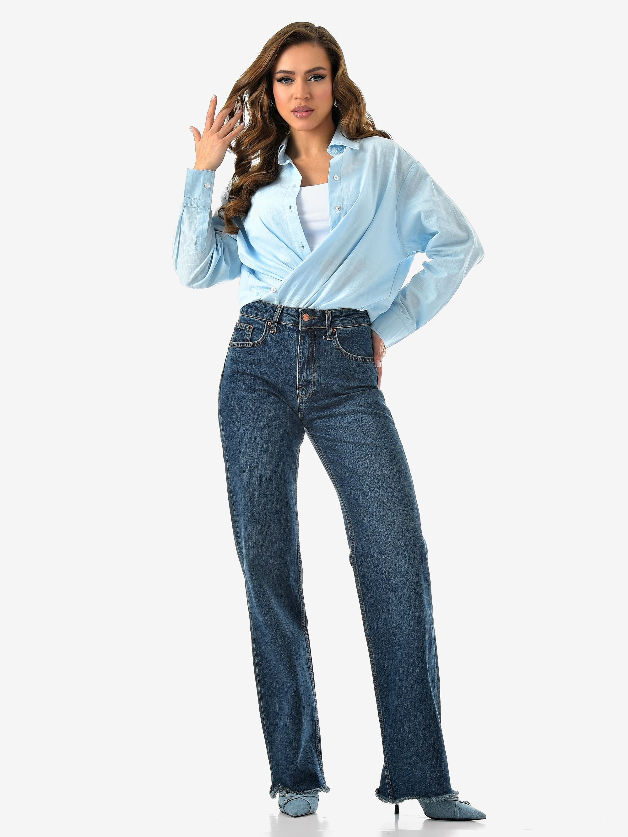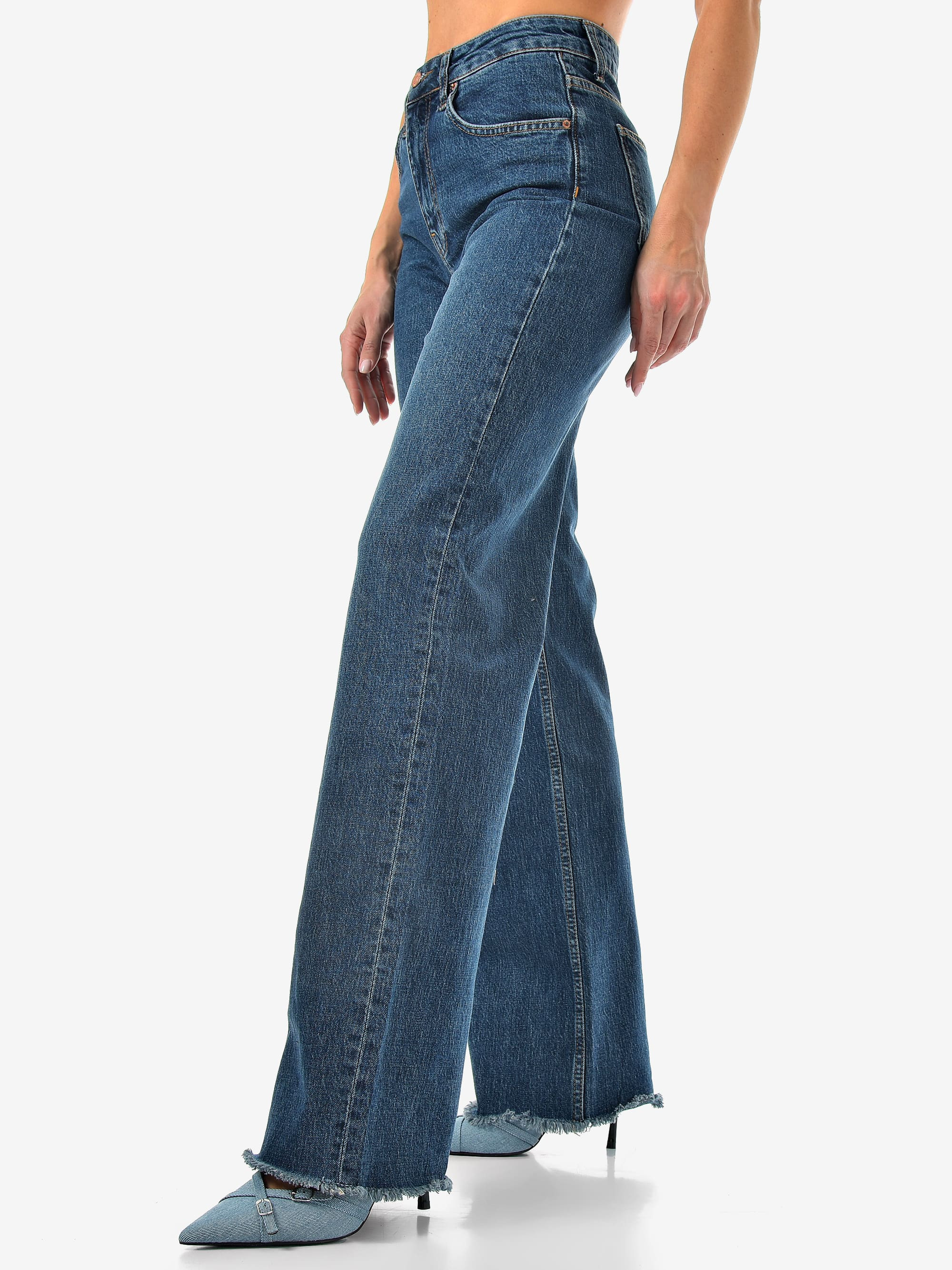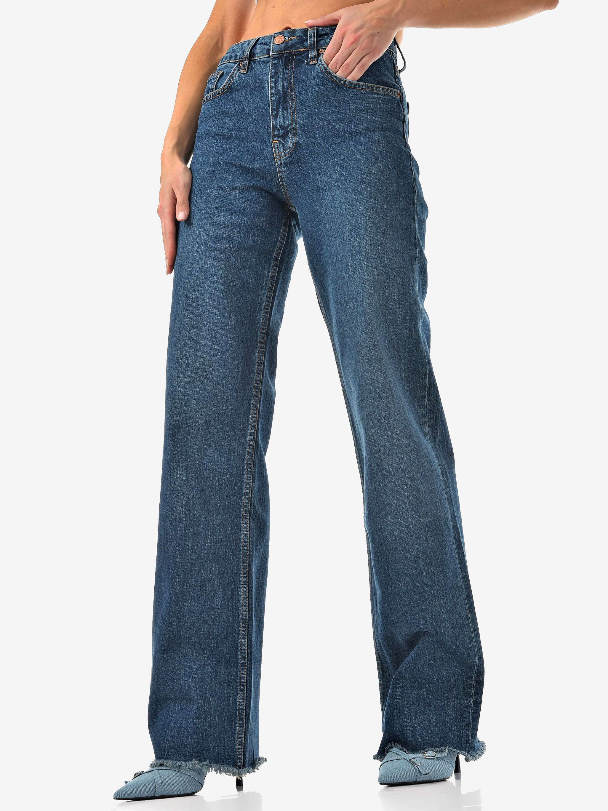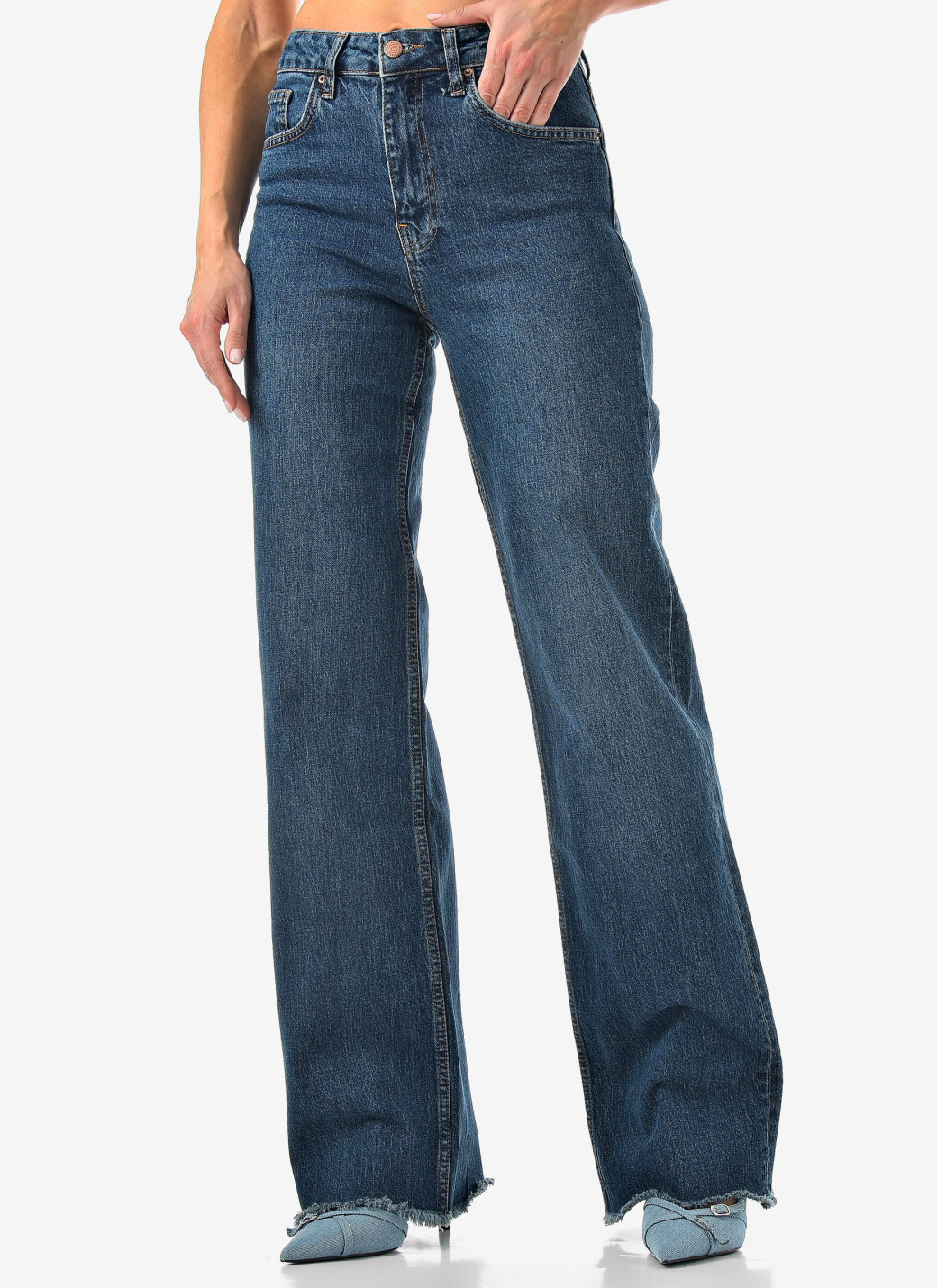 Базовый синий, удобный крой и чуть-чуть бахромы для настроения. Комфорт и стиль в одной паре.