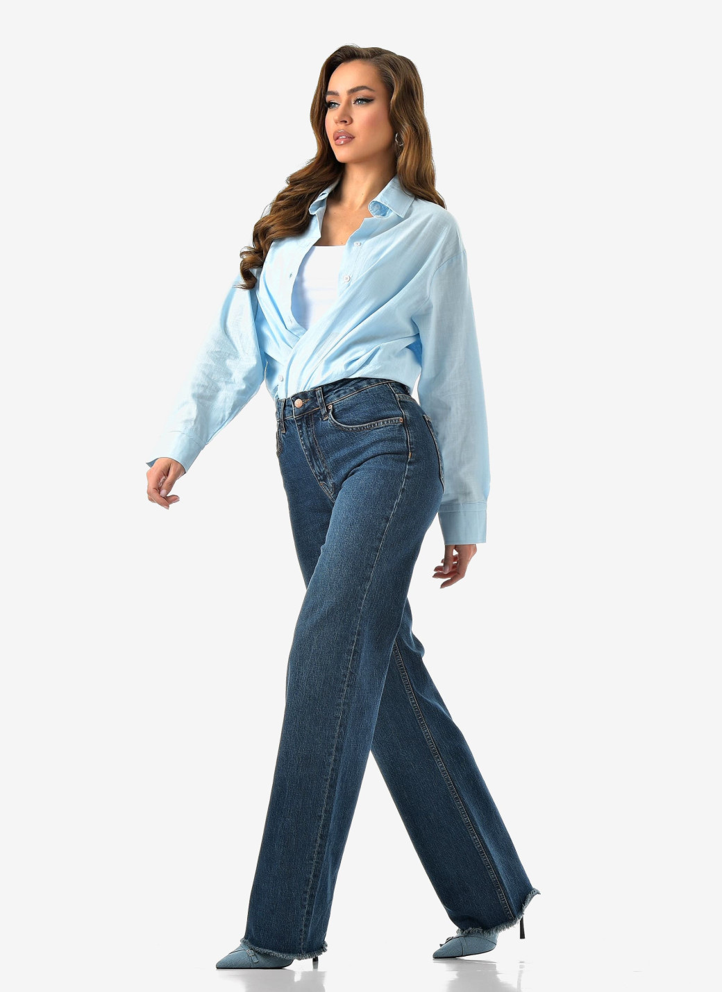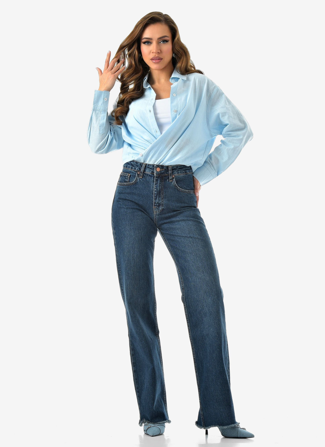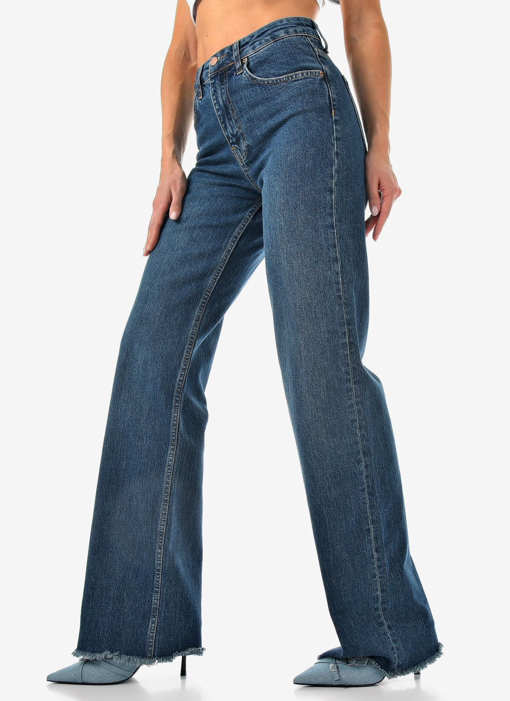 Базовый синий, удобный крой и чуть-чуть бахромы для настроения. Комфорт и стиль в одной паре.