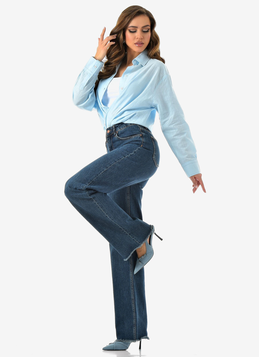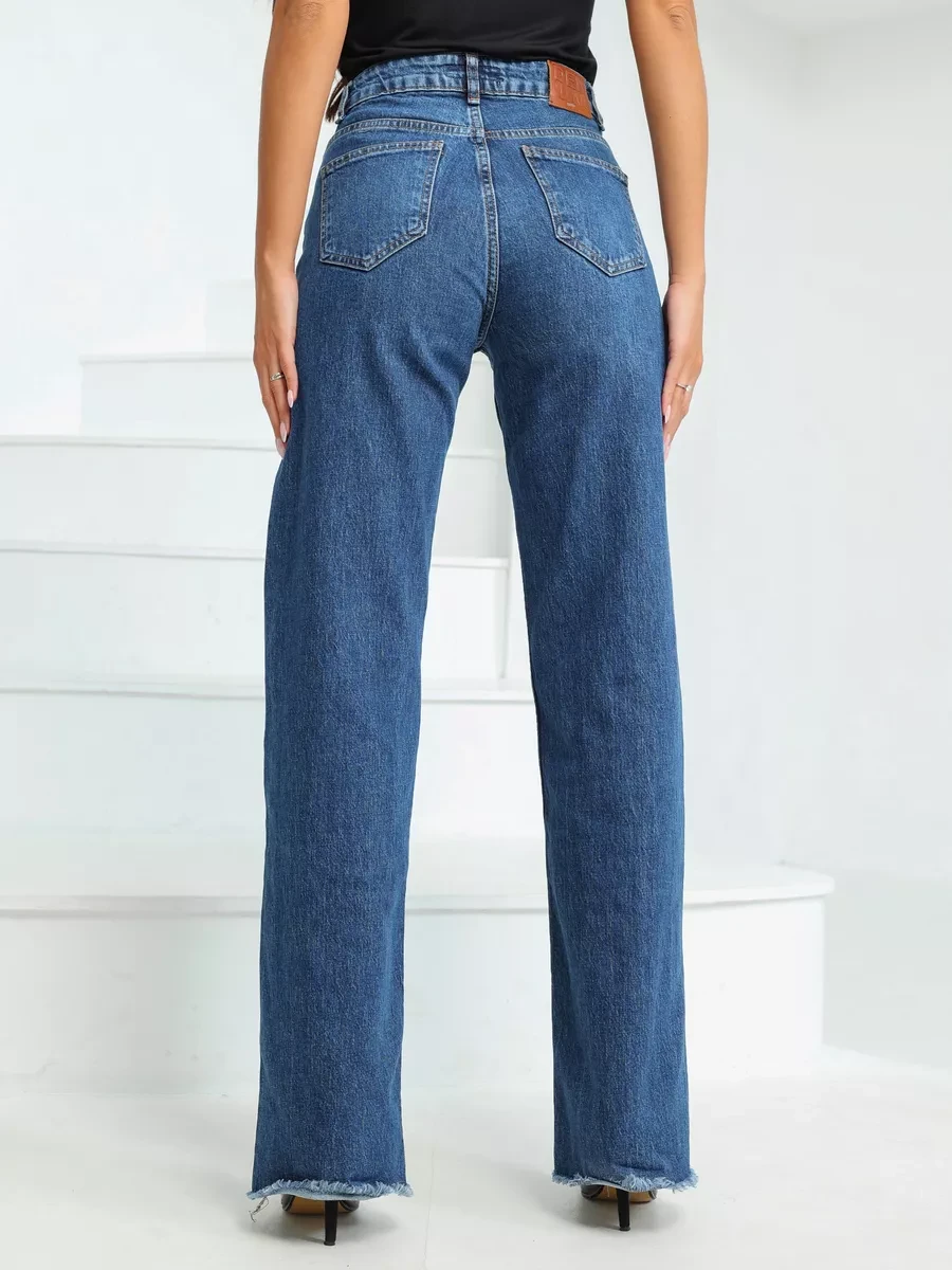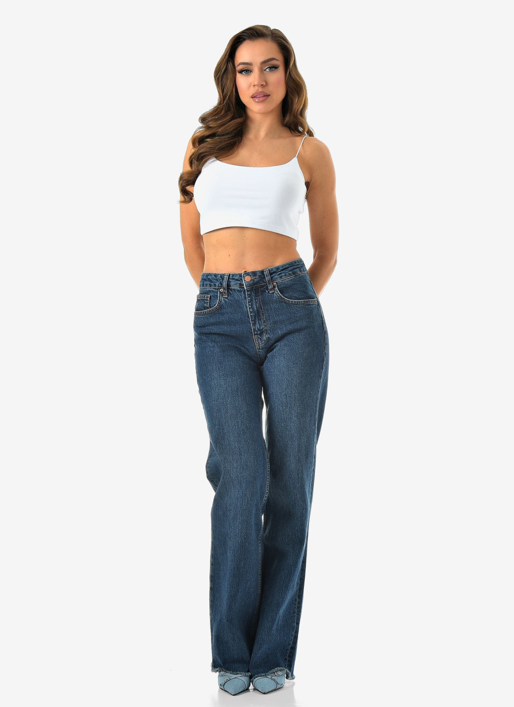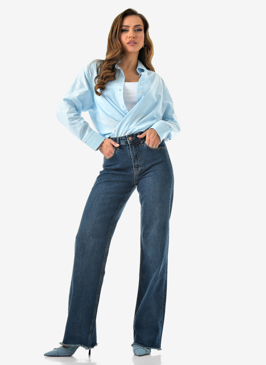Базовый синий, удобный крой и чуть-чуть бахромы для настроения. Комфорт и стиль в одной паре.